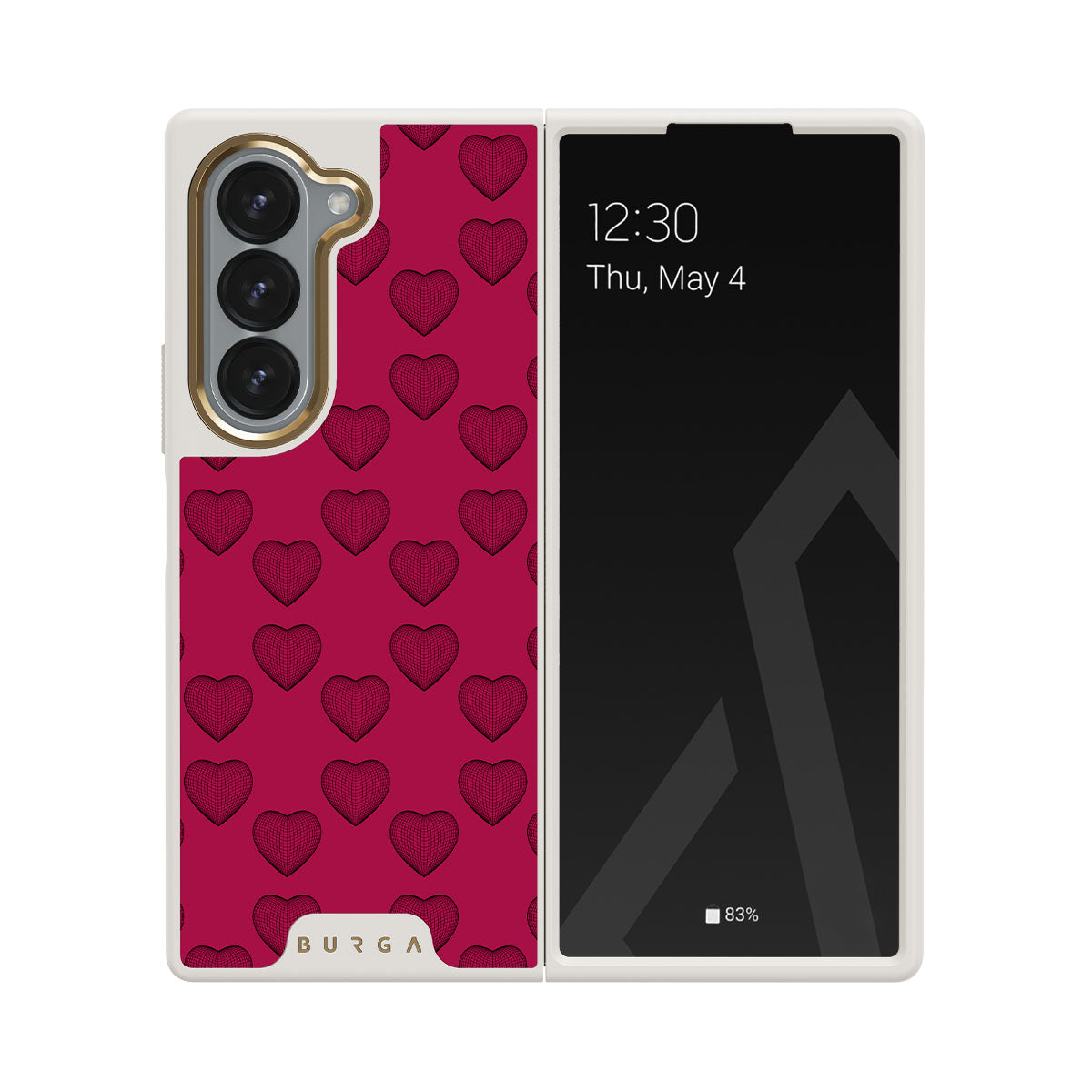 Forget roses. Show the world that you're confident, unapologetically yourself, and ready to take on the day. The vivid pink background is eye-catching and fun. The floating darker hearts add depth and sophistication. While serving as a gentle reminder to prioritize your own happiness, our Single Not Sorry Samsung Galaxy Z Fold 6 phone case will brighten up any outfit.