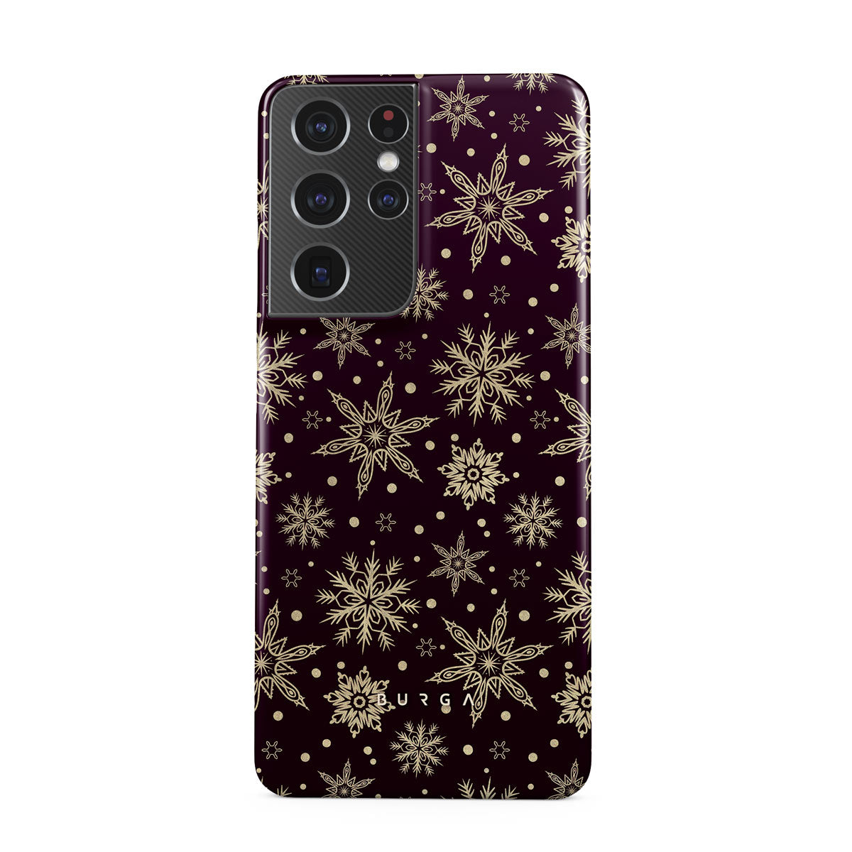 Magical, mythical, and mesmerizing, our Sleeping Beauty Samsung Galaxy S21 Ultra phone case is precisely that. The deep burgundy background emphasizes the elegance of the intricate patterns of golden snowflakes. Add a touch of expensive elegance to your device while keeping it safe from all the dangerous falls.