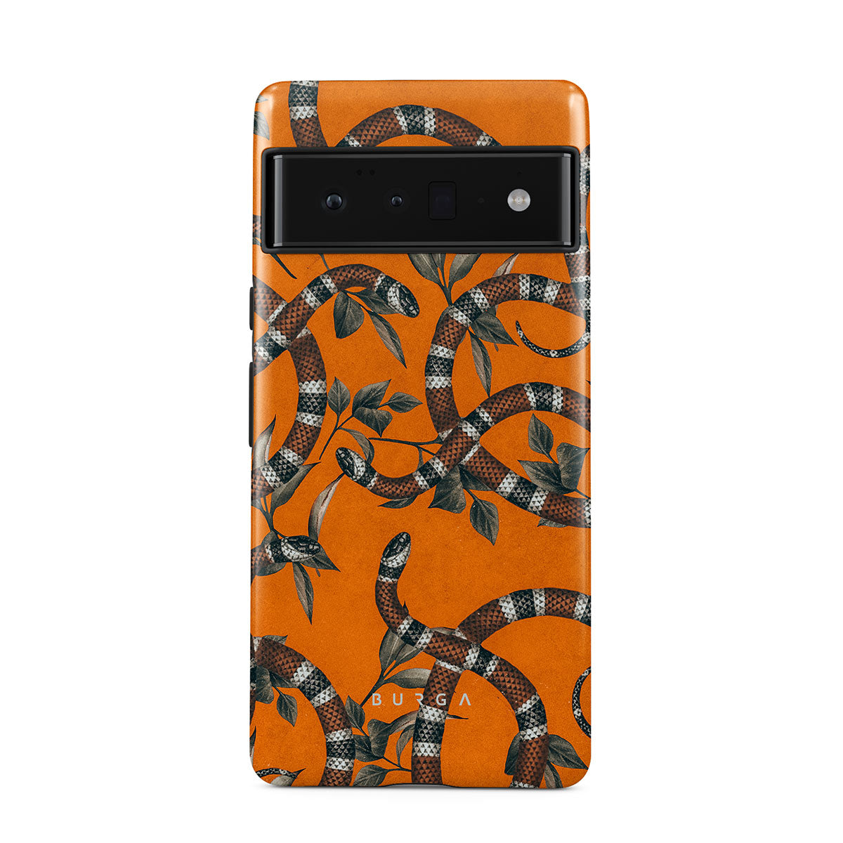 Take a bit of fierceness with yourself with our bright orange and dangerously beautiful Google Pixel 6 Pro phone case with a snake pattern. This case is real eye candy for fashion lovers and just as needed for those who strive to keep their phones protected.