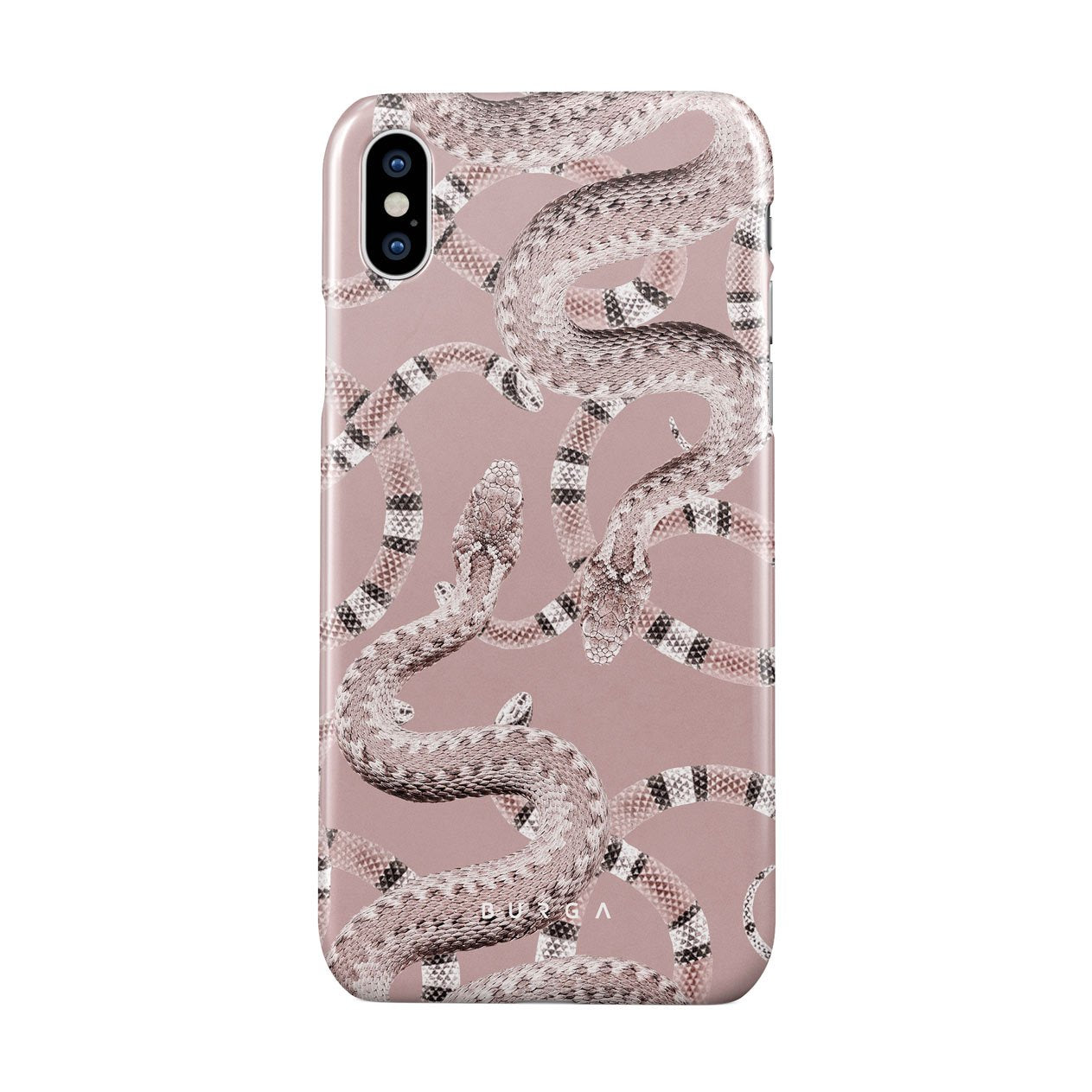 Bring the fierceness with our Poolside Glam iPhone X / XS phone case. With the pastel pink case featuring snakes, let everyone know that you can always stand for yourself no matter your kind nature. Make a statement and protect your phone at the same time.