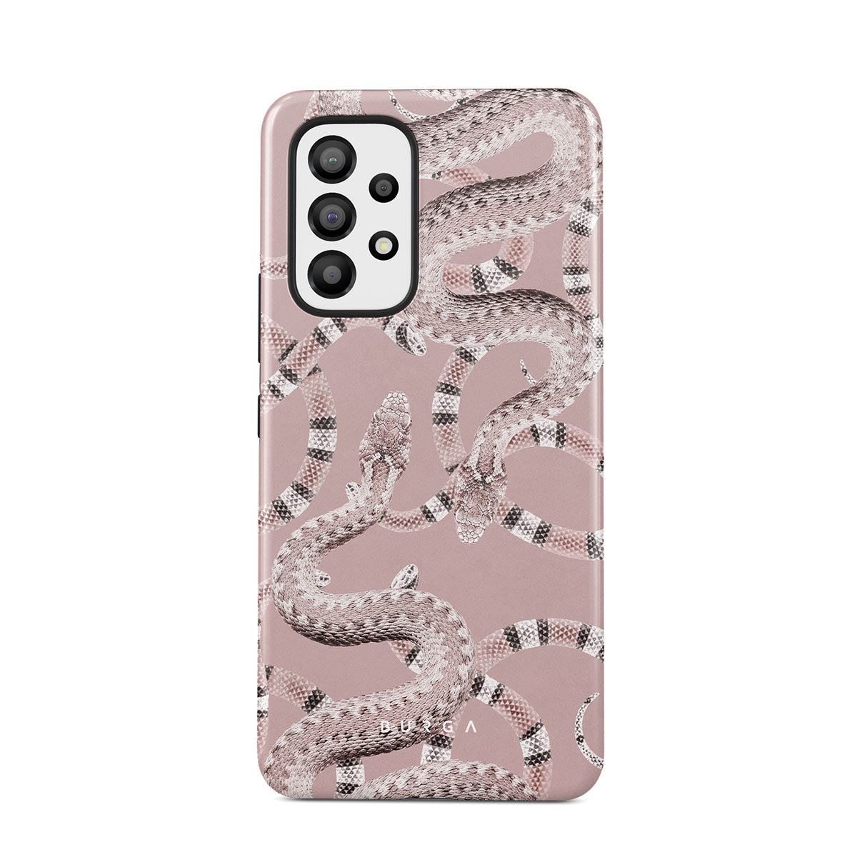 Bring the fierceness with our Poolside Glam Samsung Galaxy A72 phone case. With the pastel pink case featuring snakes, let everyone know that you can always stand for yourself no matter your kind nature. Make a statement and protect your phone at the same time.