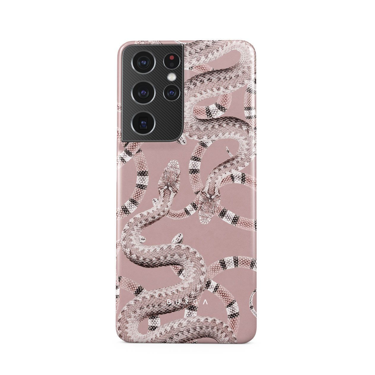 Bring the fierceness with our Poolside Glam Samsung Galaxy S21 Ultra phone case. With the pastel pink case featuring snakes, let everyone know that you can always stand for yourself no matter your kind nature. Make a statement and protect your phone at the same time.