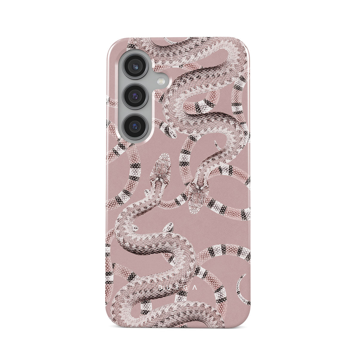 Bring the fierceness with our Poolside Glam Samsung Galaxy S24 FE phone case. With the pastel pink case featuring snakes, let everyone know that you can always stand for yourself no matter your kind nature. Make a statement and protect your phone at the same time.