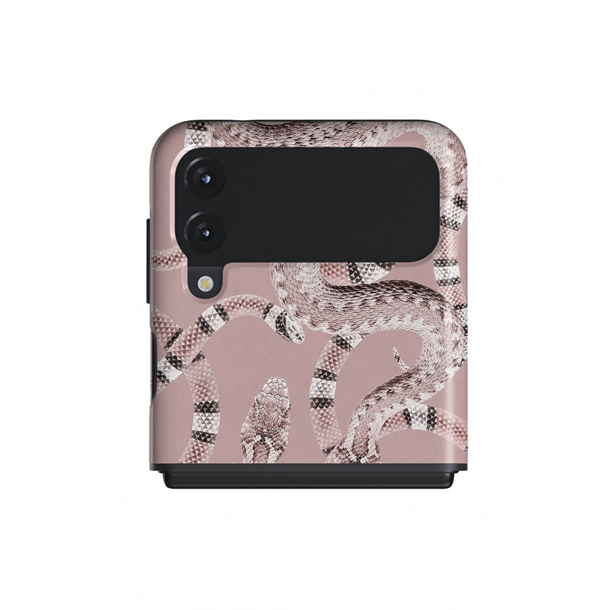 Bring the fierceness with our Poolside Glam Samsung Galaxy Z Flip 3 phone case. With the pastel pink case featuring snakes, let everyone know that you can always stand for yourself no matter your kind nature. Make a statement and protect your phone at the same time.