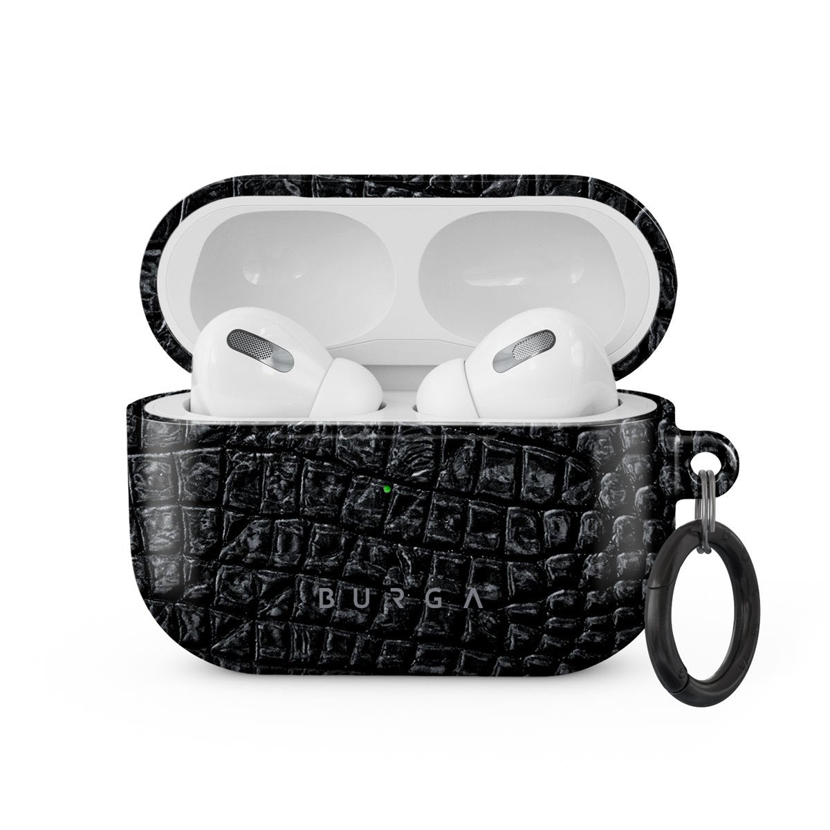 Our Reaper's Touch Apple Airpods Pro case cover features a dangerously beautiful snakeskin design in dark black. Add some confidence to your style, and keep your AirPods case covered and protected from the dangers of the world while looking stunning. Our case fits perfectly snug around Apple Airpods Pro . “Like a glove!” one might say. And it won’t disrupt the wireless charging capabilities of the newer model. There’s even an LED light indicator to prove it (don’t worry, wired charging still works, too). When fitted, the BURGA case will protect the delicate Apple Airpods Pro case beneath it from scratches, bumps, and drops while remaining scratch-free itself. Our signature design pattern prints are High Quality, and will never peel or fade away- thanks to our unique printing technology. And finally, a handy carabiner is there to make your life easier and more convenient: just snap it around your keys or belt loop and tackle the day head-on. Your music is right there by your side when you need it.