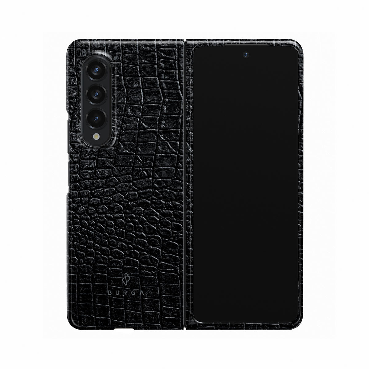 Our Reaper's Touch Samsung Galaxy Z Fold 3 phone case cover features a classic snakeskin design in dark black. The dangerous animal print will add confidence and a touch of luxury to your style while transforming your phone into a fashion accessory.