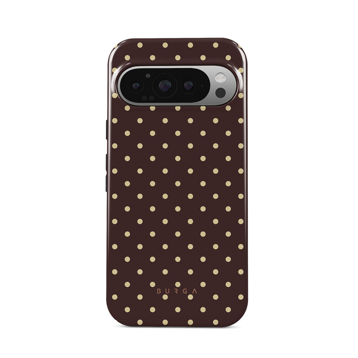 Playful yet polished, our Sorry Busy Google Pixel 9 Pro XL phone case design features a warm brown background sprinkled with delicate beige polka dots, blending charm with a professional edge. It's for those who keep it stylish, even when fully booked and thriving.