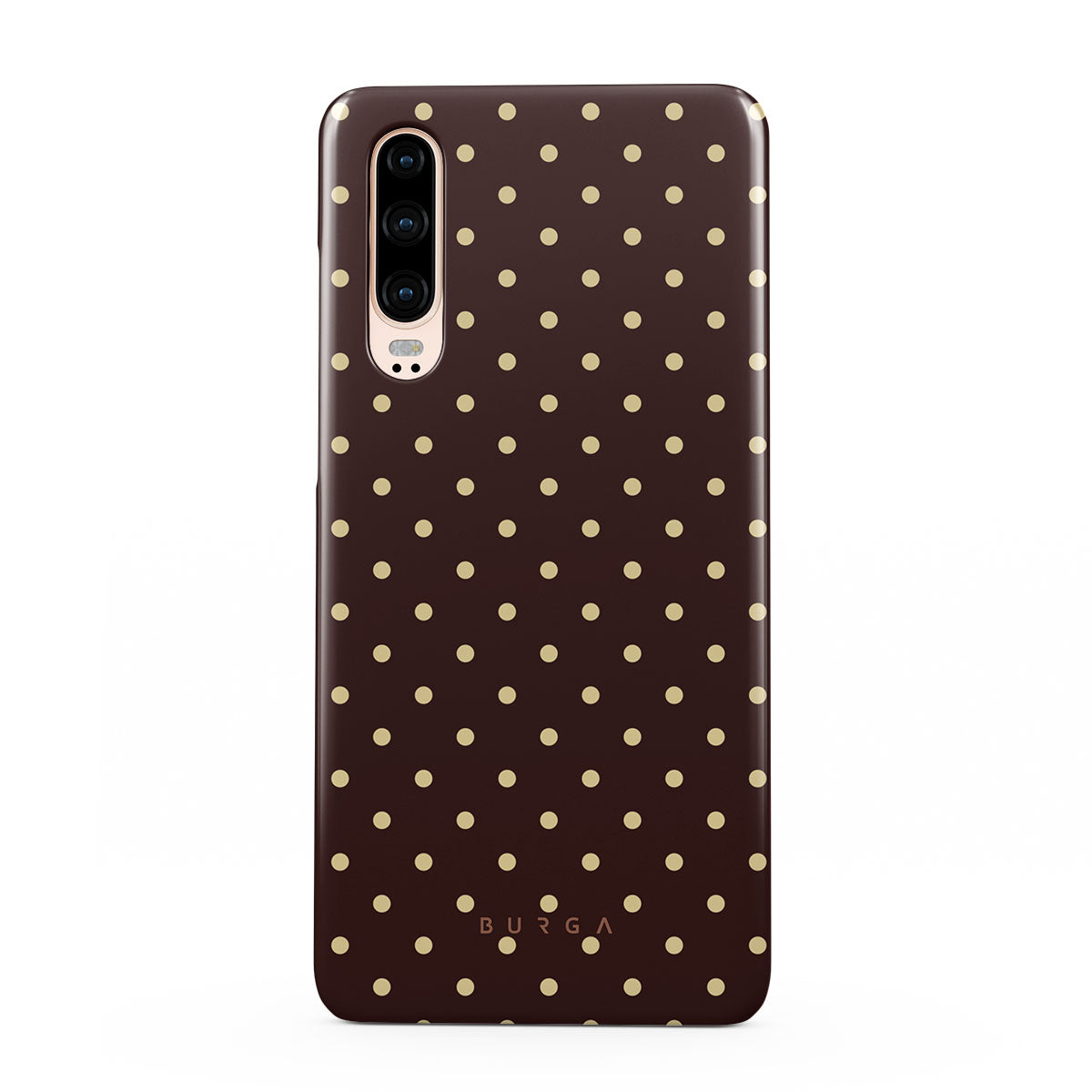 Playful yet polished, our Sorry Busy Huawei P30 phone case design features a warm brown background sprinkled with delicate beige polka dots, blending charm with a professional edge. It's for those who keep it stylish, even when fully booked and thriving.