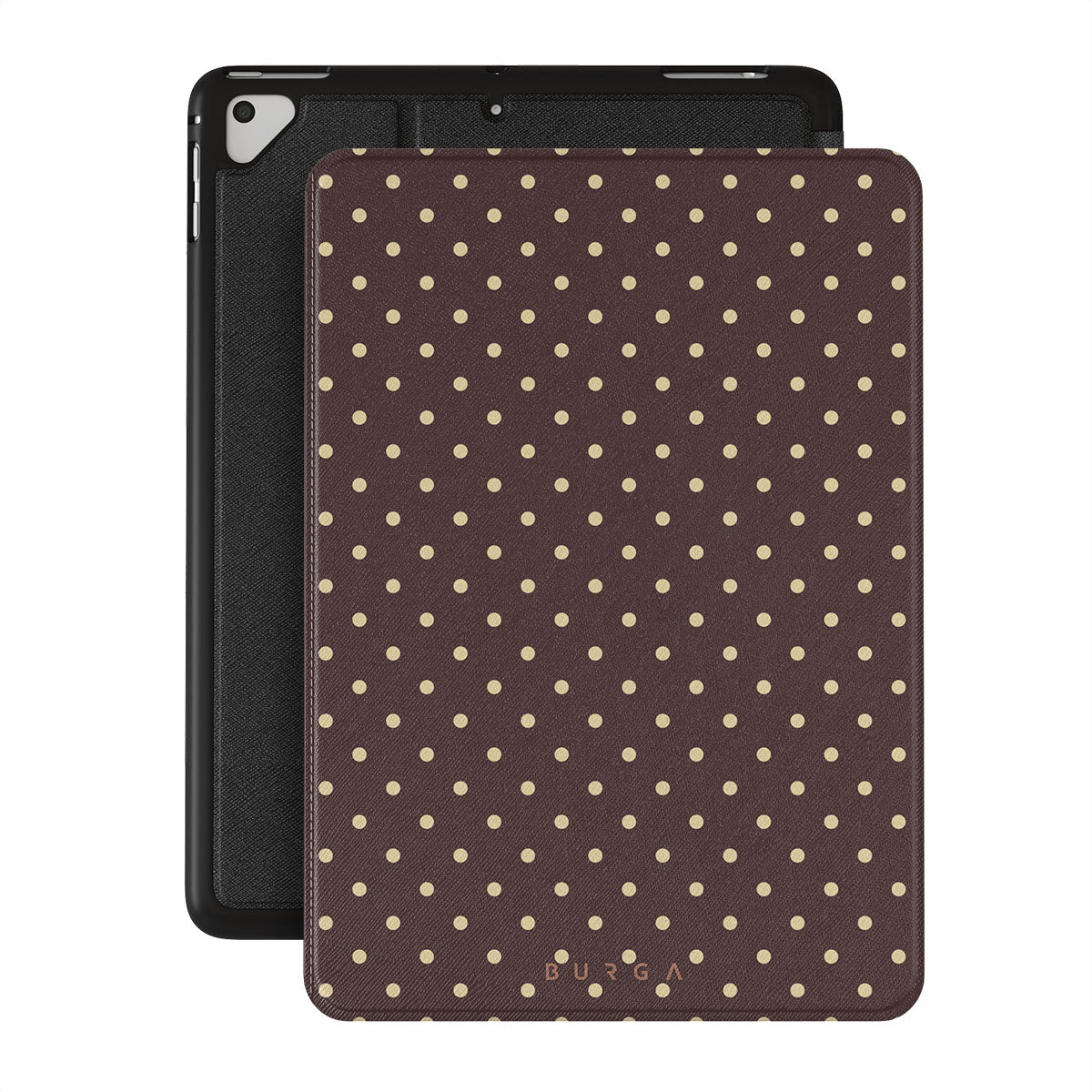 Playful yet polished, our Sorry Busy iPad 9.7 (6th/5th Gen) folio case design features a warm brown background sprinkled with delicate beige polka dots, blending charm with a professional edge. It's for those who keep it stylish, even when fully booked and thriving.