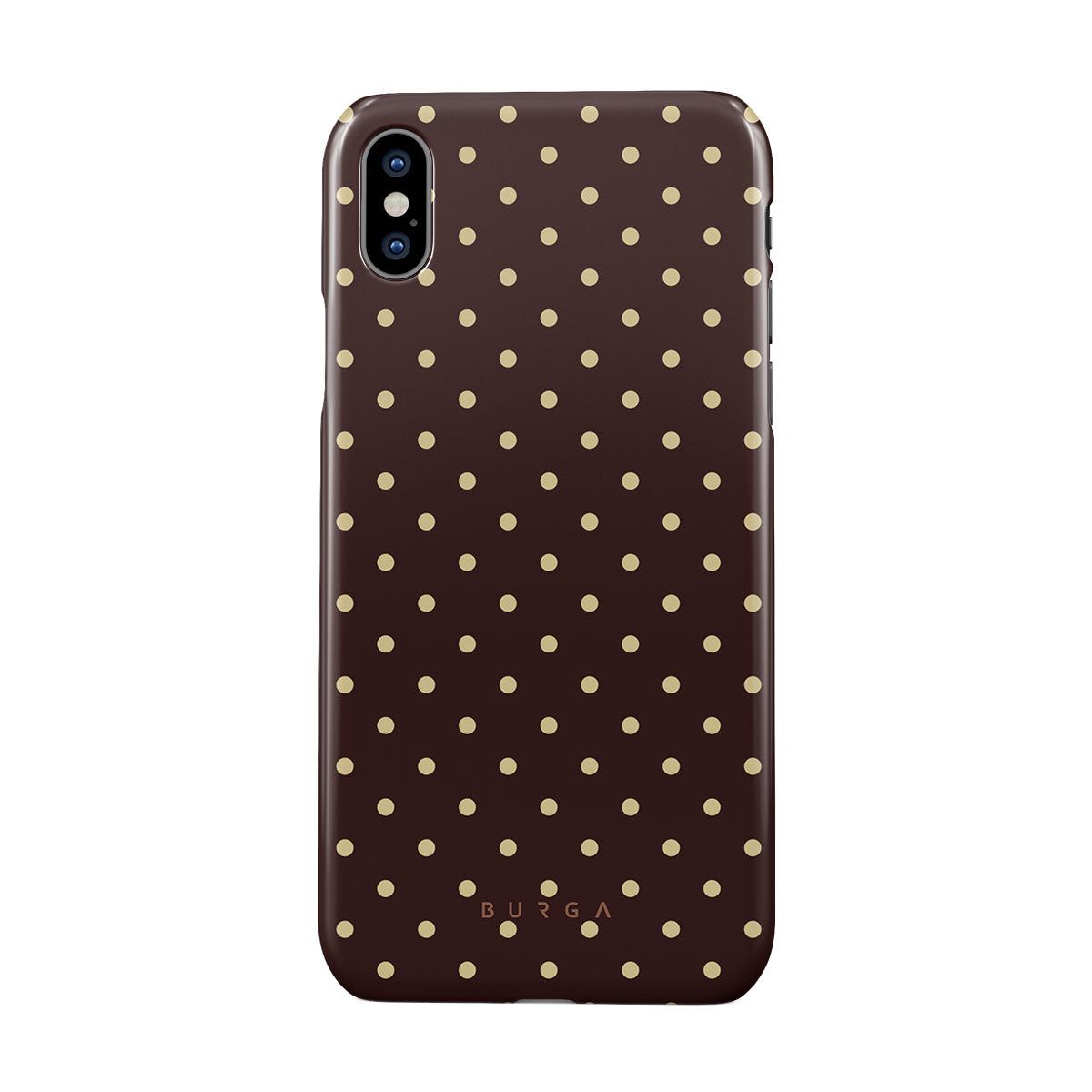 Playful yet polished, our Sorry Busy iPhone XS Max phone case design features a warm brown background sprinkled with delicate beige polka dots, blending charm with a professional edge. It's for those who keep it stylish, even when fully booked and thriving.