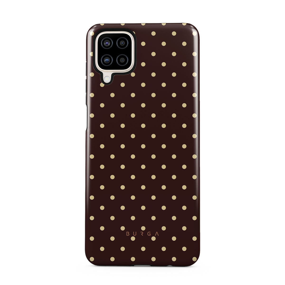Playful yet polished, our Sorry Busy Samsung Galaxy A12 4G phone case design features a warm brown background sprinkled with delicate beige polka dots, blending charm with a professional edge. It's for those who keep it stylish, even when fully booked and thriving.