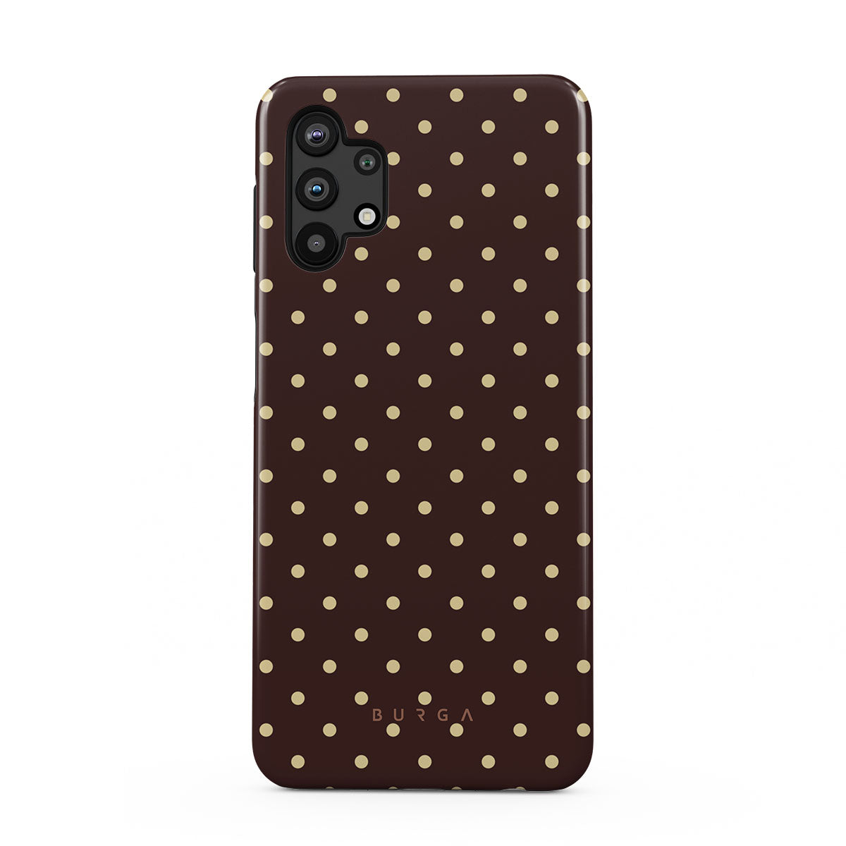 Playful yet polished, our Sorry Busy Samsung Galaxy A32 5G phone case design features a warm brown background sprinkled with delicate beige polka dots, blending charm with a professional edge. It's for those who keep it stylish, even when fully booked and thriving.