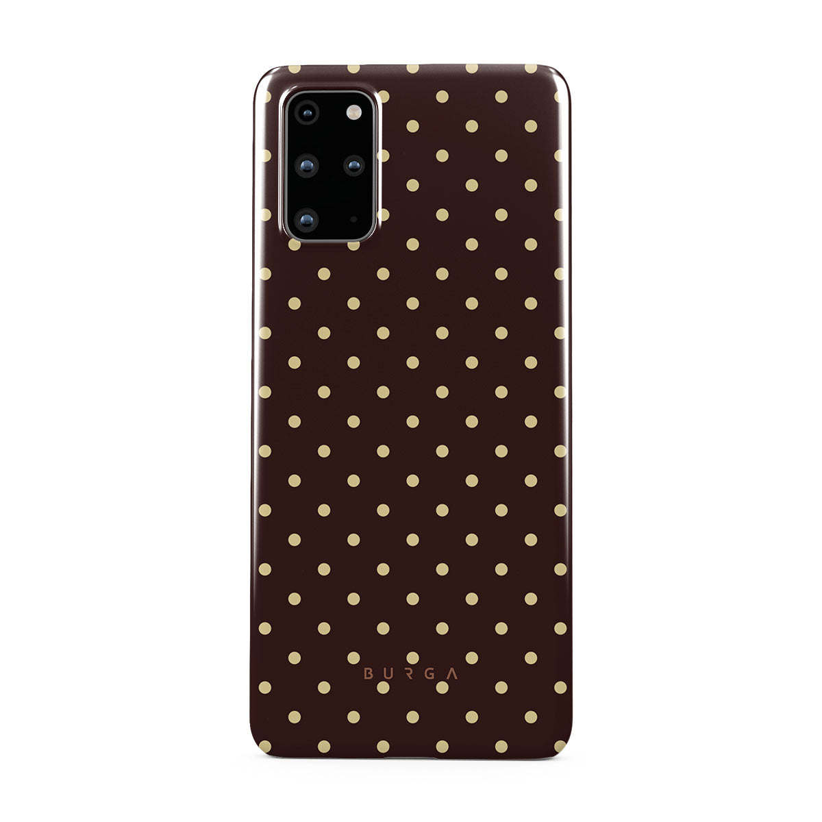 Playful yet polished, our Sorry Busy Samsung Galaxy S20 Plus 4G / 5G phone case design features a warm brown background sprinkled with delicate beige polka dots, blending charm with a professional edge. It's for those who keep it stylish, even when fully booked and thriving.