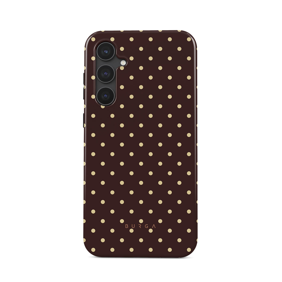 Playful yet polished, our Sorry Busy Samsung Galaxy S23 FE phone case design features a warm brown background sprinkled with delicate beige polka dots, blending charm with a professional edge. It's for those who keep it stylish, even when fully booked and thriving.