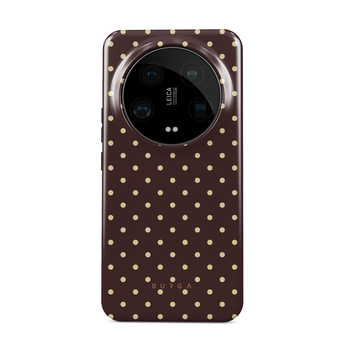 Playful yet polished, our Sorry Busy Xiaomi 14 Ultra phone case design features a warm brown background sprinkled with delicate beige polka dots, blending charm with a professional edge. It's for those who keep it stylish, even when fully booked and thriving.