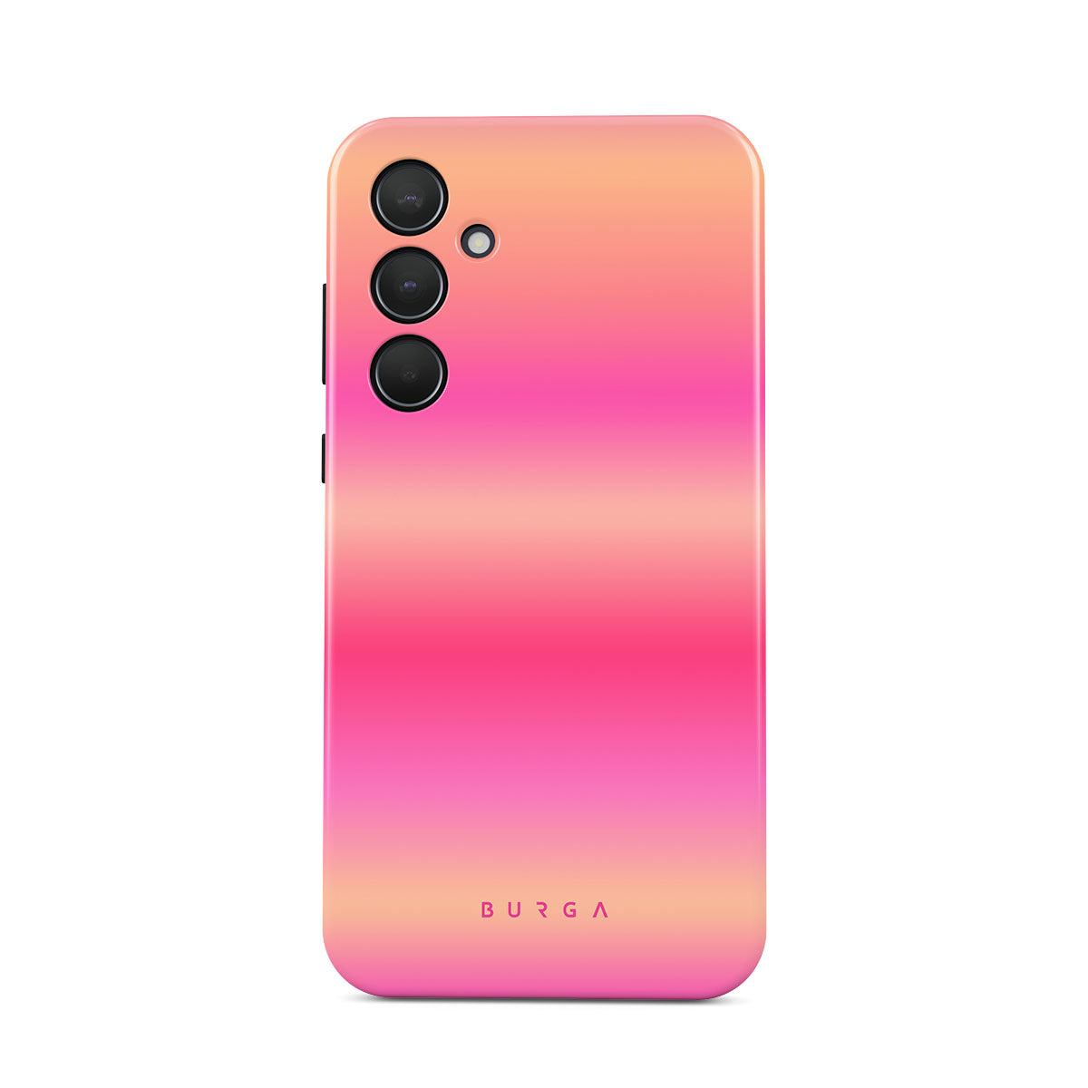 Introducing SPF100—a Samsung Galaxy A35 phone case that's as hot as a summer's day. Featuring a gradient of vivid pinks and warm oranges, this design radiates bold, vibrant energy, reminiscent of sun-kissed skin and tropical getaways.