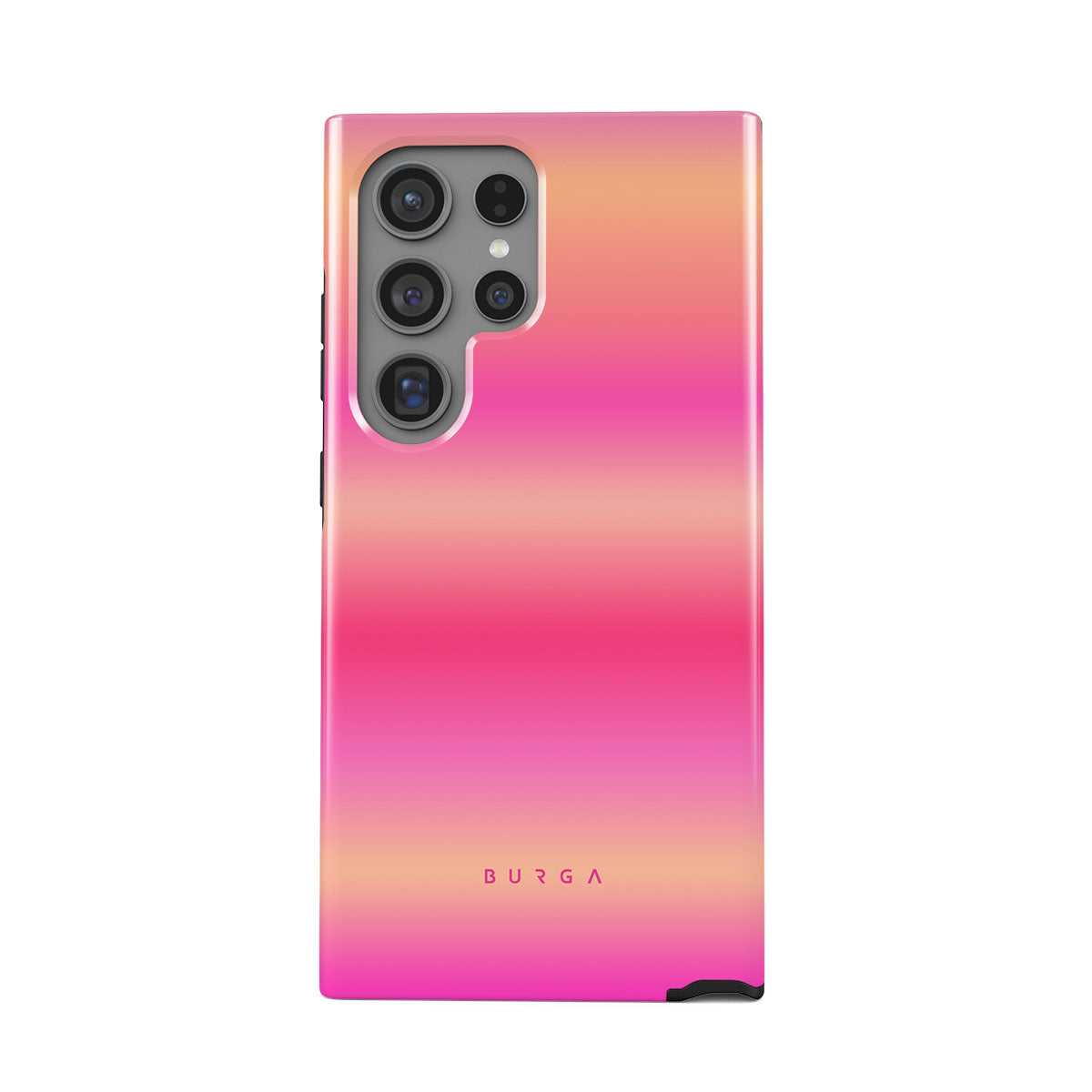 Introducing SPF100—a Samsung Galaxy S24 Ultra phone case that's as hot as a summer's day. Featuring a gradient of vivid pinks and warm oranges, this design radiates bold, vibrant energy, reminiscent of sun-kissed skin and tropical getaways.