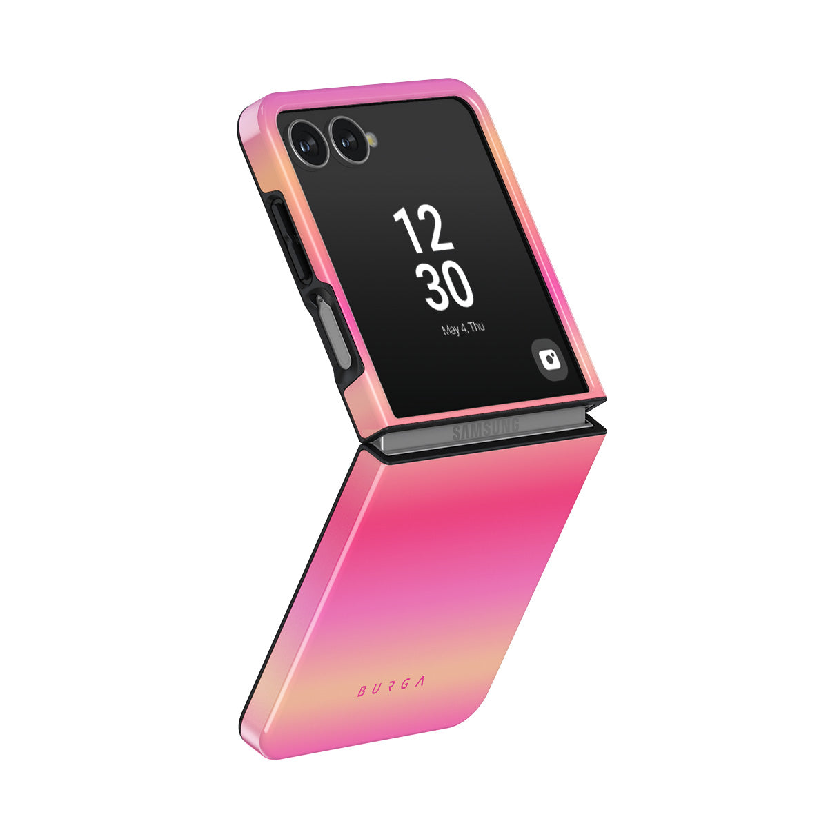 Introducing SPF100—a Samsung Galaxy Z Flip 7 phone case that's as hot as a summer's day. Featuring a gradient of vivid pinks and warm oranges, this design radiates bold, vibrant energy, reminiscent of sun-kissed skin and tropical getaways.