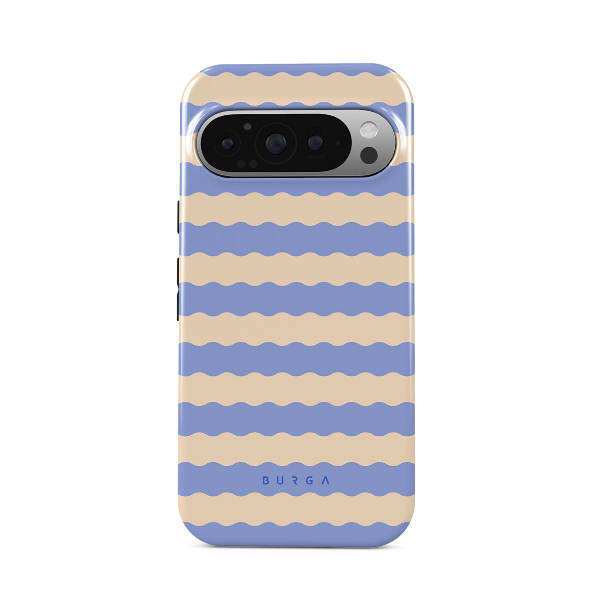 Dive into the cool, refreshing style of our Splash design–a dynamic Google Pixel 9 Pro XL phone case featuring playful, wavy stripes of serene ocean blue and soft sandy beige. Perfect for those who love to make a splash with their accessories.