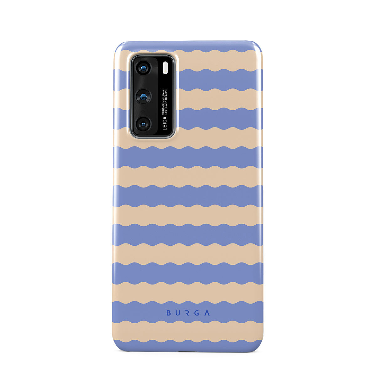 Dive into the cool, refreshing style of our Splash design–a dynamic Huawei P40 phone case featuring playful, wavy stripes of serene ocean blue and soft sandy beige. Perfect for those who love to make a splash with their accessories.