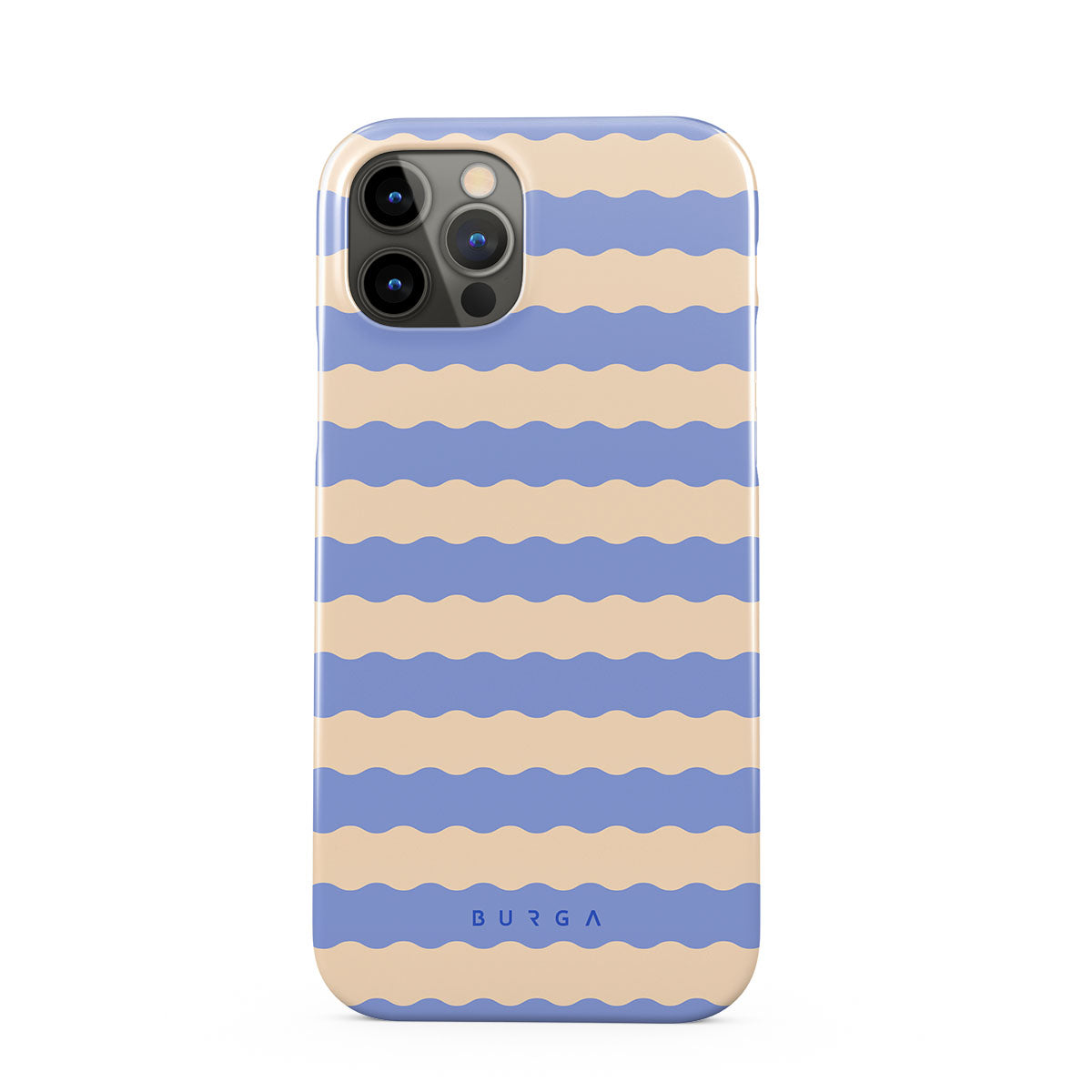 Dive into the cool, refreshing style of our Splash design–a dynamic iPhone 12 Pro Max phone case featuring playful, wavy stripes of serene ocean blue and soft sandy beige. Perfect for those who love to make a splash with their accessories.