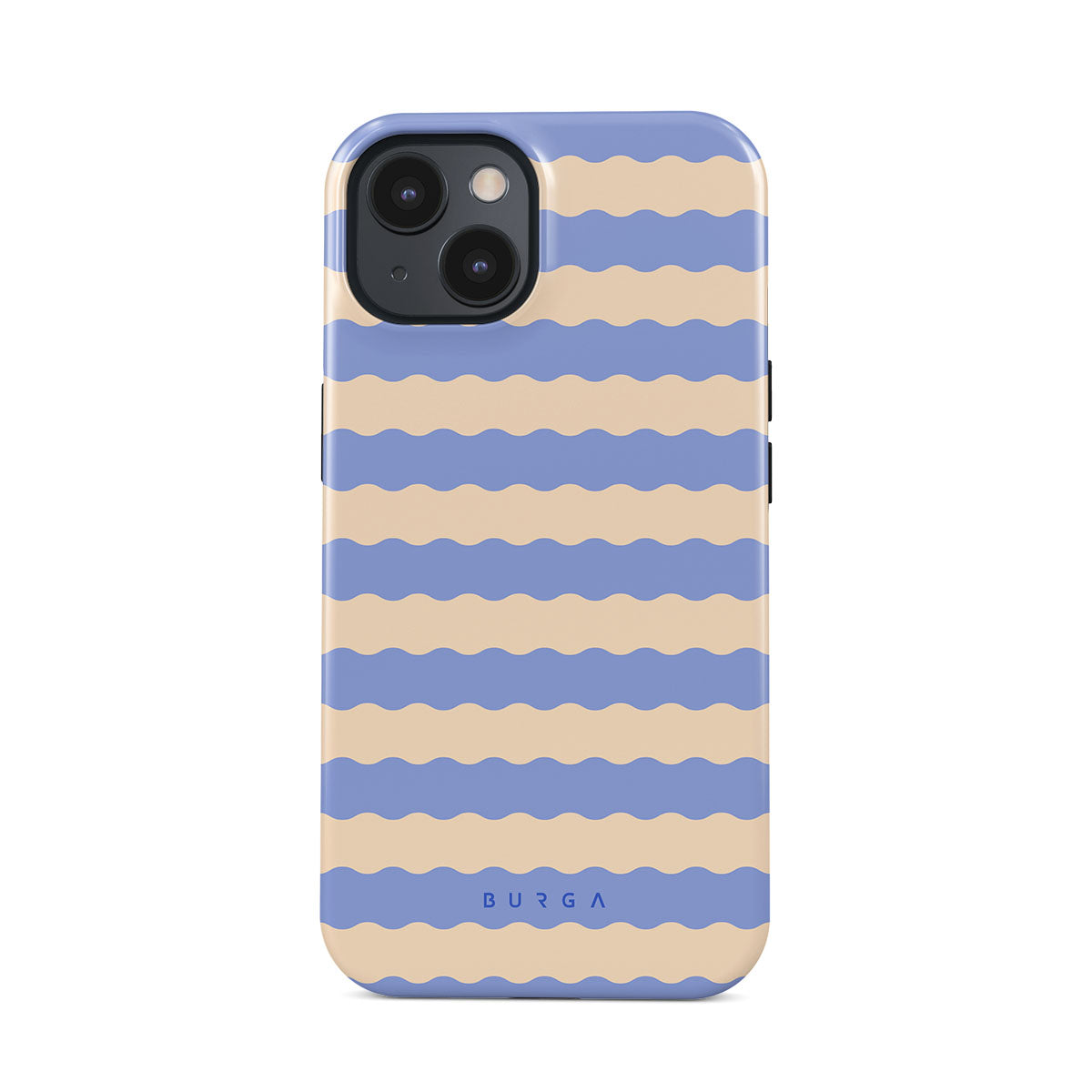 Dive into the cool, refreshing style of our Splash design–a dynamic iPhone 14 Plus phone case featuring playful, wavy stripes of serene ocean blue and soft sandy beige. Perfect for those who love to make a splash with their accessories.