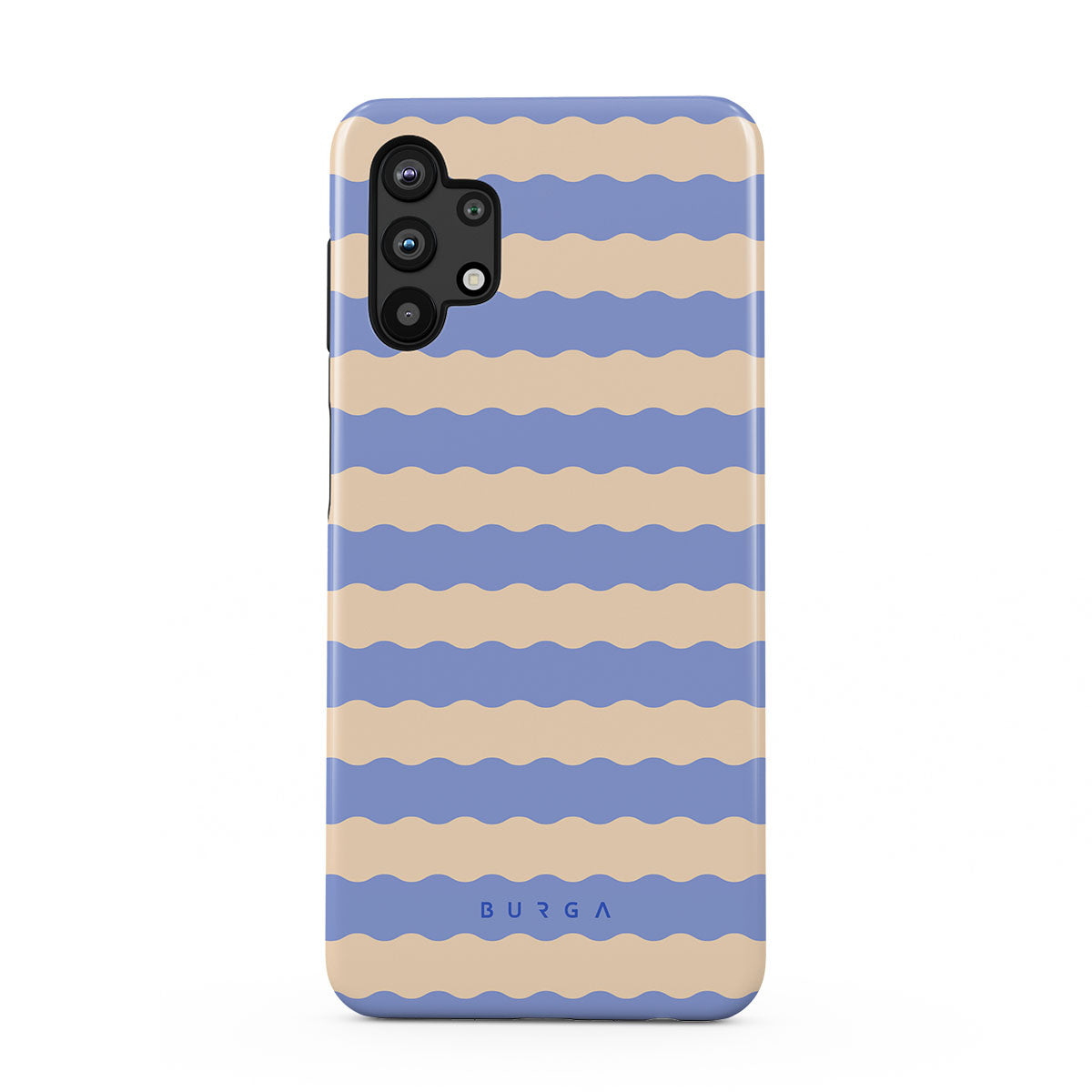 Dive into the cool, refreshing style of our Splash design–a dynamic Samsung Galaxy A32 5G phone case featuring playful, wavy stripes of serene ocean blue and soft sandy beige. Perfect for those who love to make a splash with their accessories.