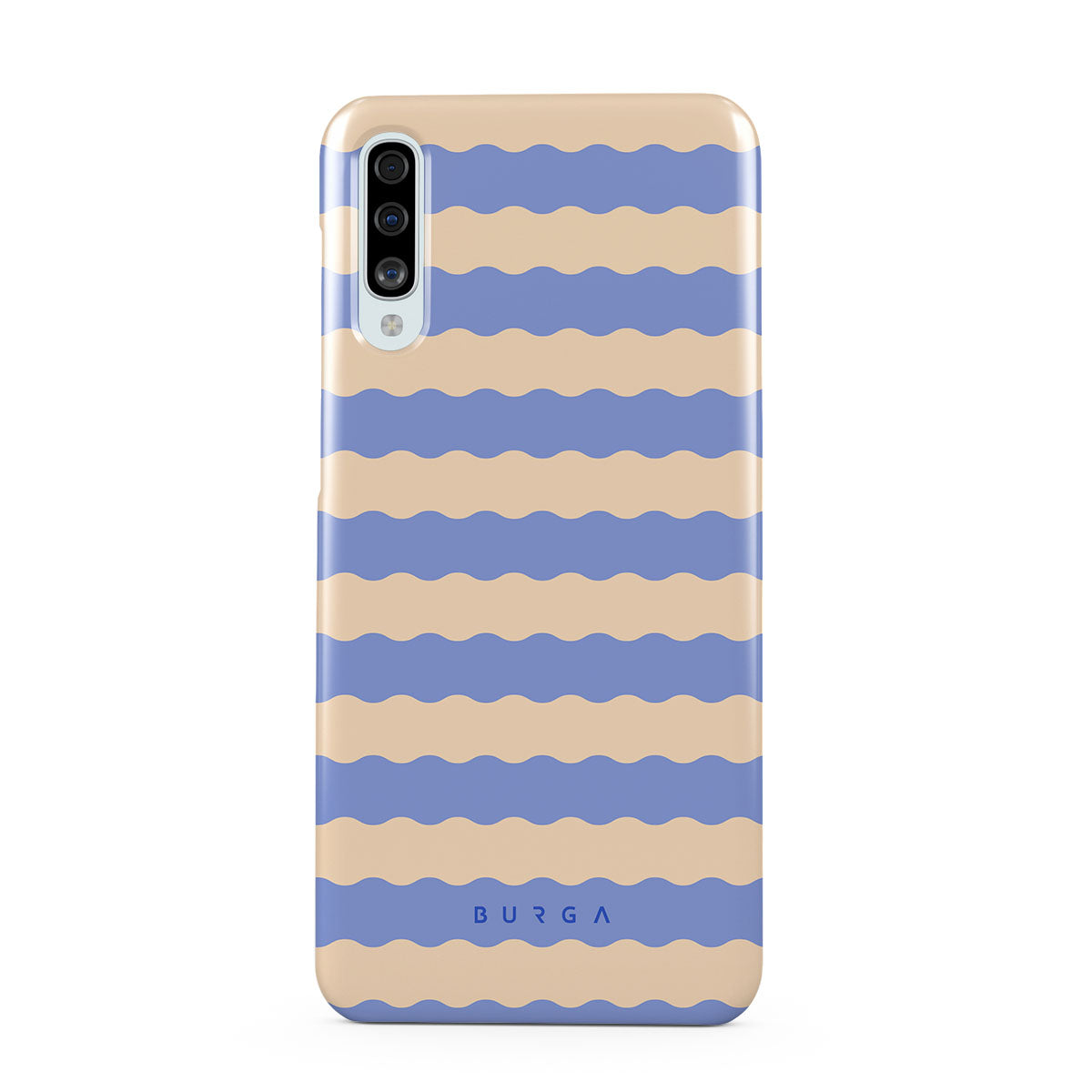 Dive into the cool, refreshing style of our Splash design–a dynamic Samsung Galaxy A50 phone case featuring playful, wavy stripes of serene ocean blue and soft sandy beige. Perfect for those who love to make a splash with their accessories.