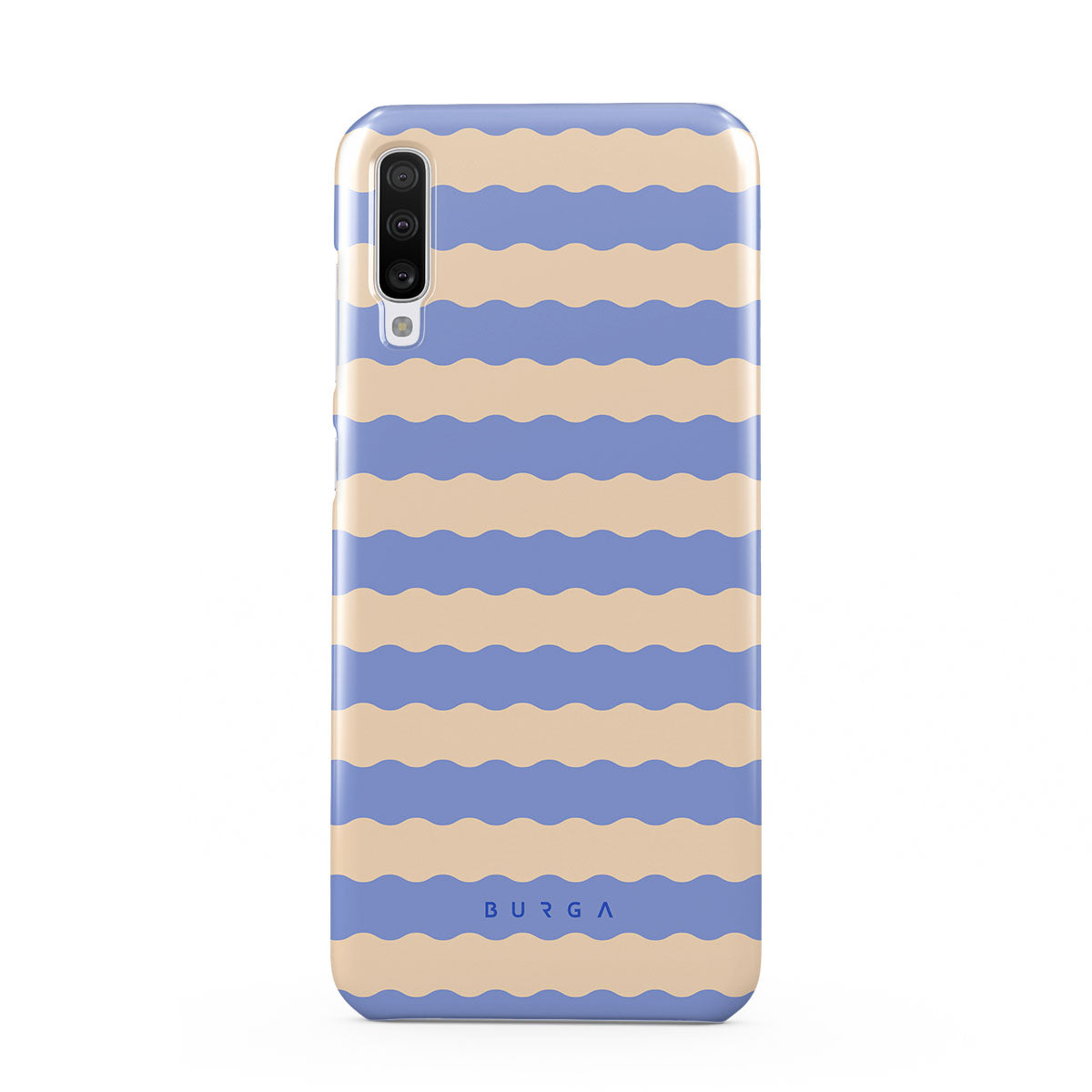 Dive into the cool, refreshing style of our Splash design–a dynamic Samsung Galaxy A70 phone case featuring playful, wavy stripes of serene ocean blue and soft sandy beige. Perfect for those who love to make a splash with their accessories.