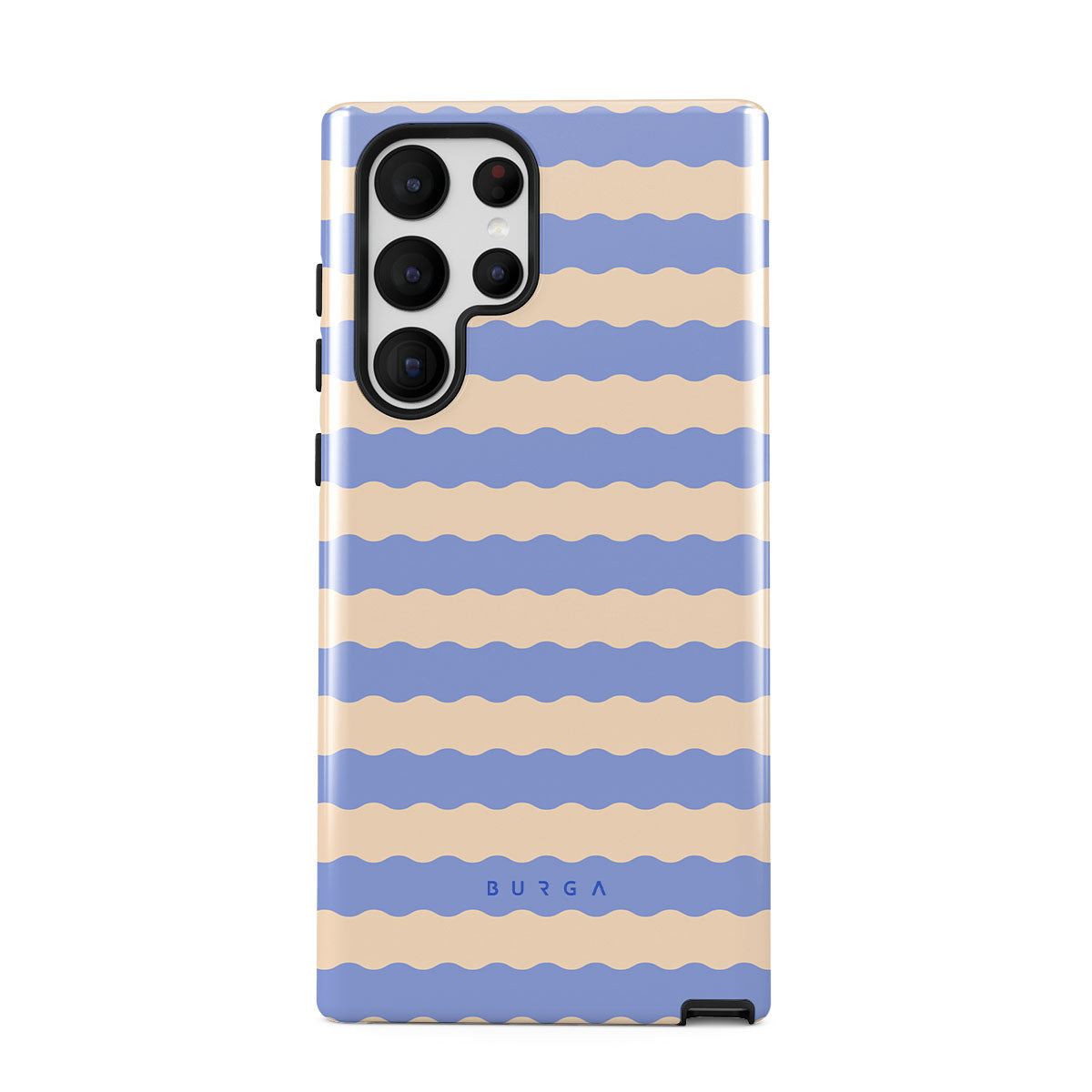 Dive into the cool, refreshing style of our Splash design–a dynamic Samsung Galaxy S22 Ultra phone case featuring playful, wavy stripes of serene ocean blue and soft sandy beige. Perfect for those who love to make a splash with their accessories.