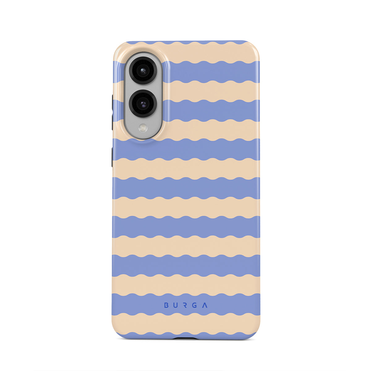 Dive into the cool, refreshing style of our Splash design–a dynamic Samsung Galaxy S25 Edge phone case featuring playful, wavy stripes of serene ocean blue and soft sandy beige. Perfect for those who love to make a splash with their accessories.