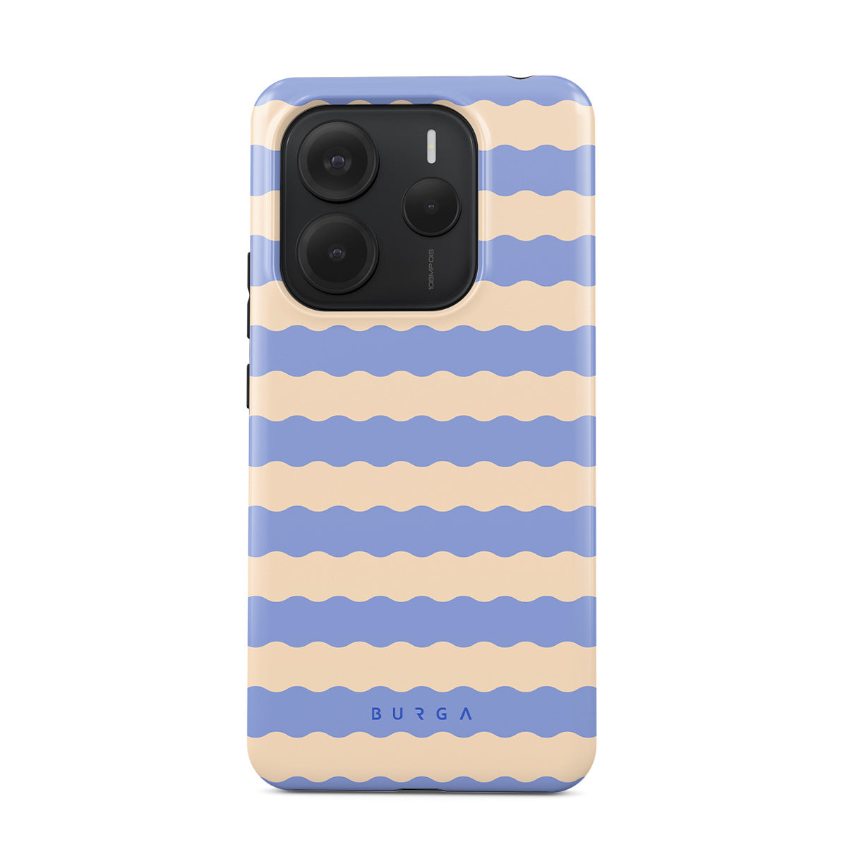Dive into the cool, refreshing style of our Splash design–a dynamic Xiaomi Redmi Note 14 5G phone case featuring playful, wavy stripes of serene ocean blue and soft sandy beige. Perfect for those who love to make a splash with their accessories.