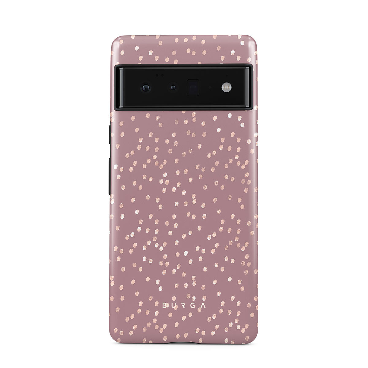 Trendy mauve color as a background for the gold-colored spots creates true beauty. Make your Google Pixel 6 Pro stand out with our protective and pretty Hot Cocoa phone case. The spotted pattern adds a touch of luxury to your phone, while the case's hard-shell nature offers much-needed protection.