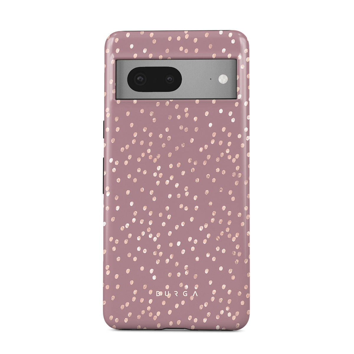 Trendy mauve color as a background for the gold-colored spots creates true beauty. Make your Samsung Galaxy S22 stand out with our protective and pretty Hot Cocoa phone case. The spotted pattern adds a touch of luxury to your phone, while the case's hard-shell nature offers much-needed protection.