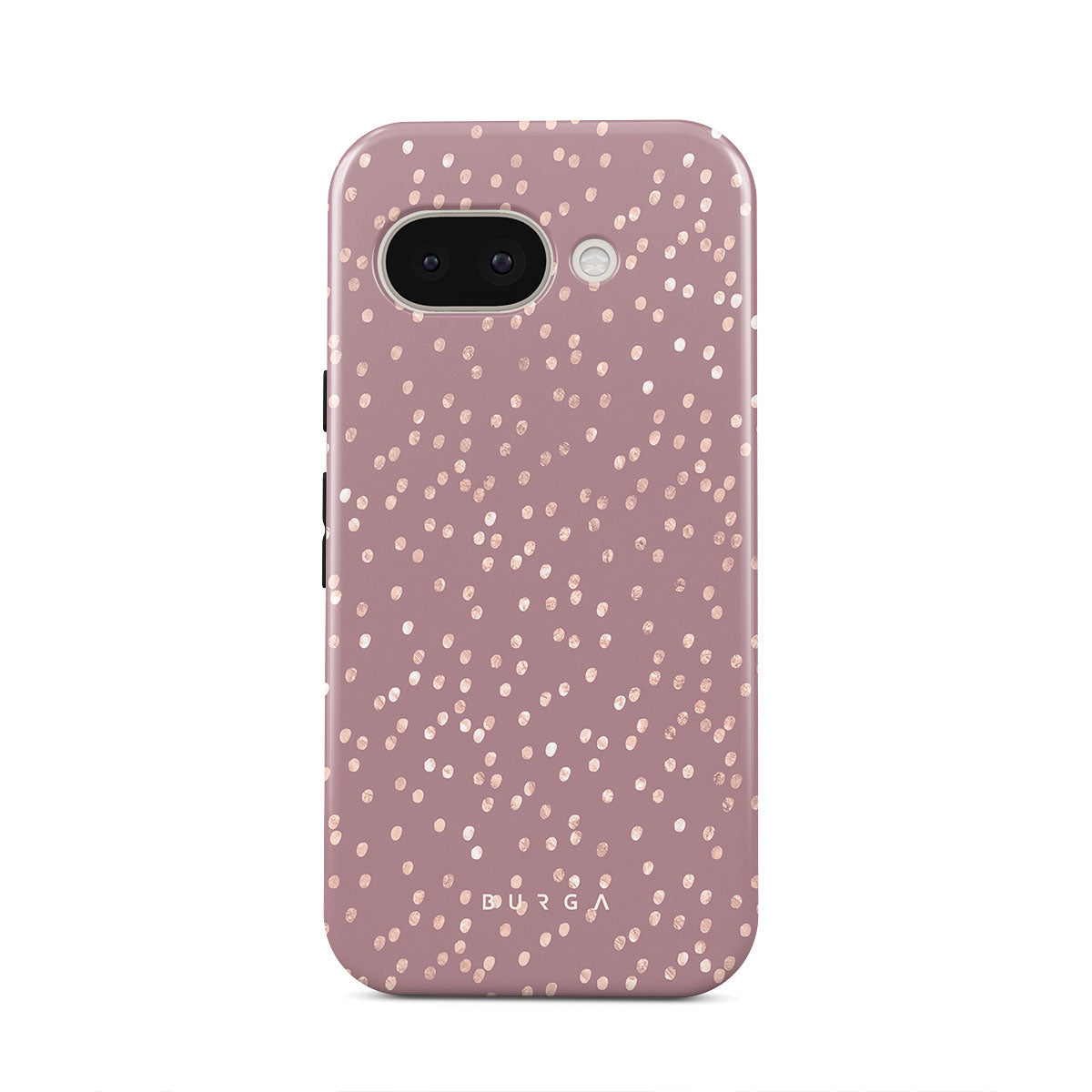 Trendy mauve color as a background for the gold-colored spots creates true beauty. Make your Google Pixel 9a stand out with our protective and pretty Hot Cocoa phone case. The spotted pattern adds a touch of luxury to your phone, while the case's hard-shell nature offers much-needed protection.