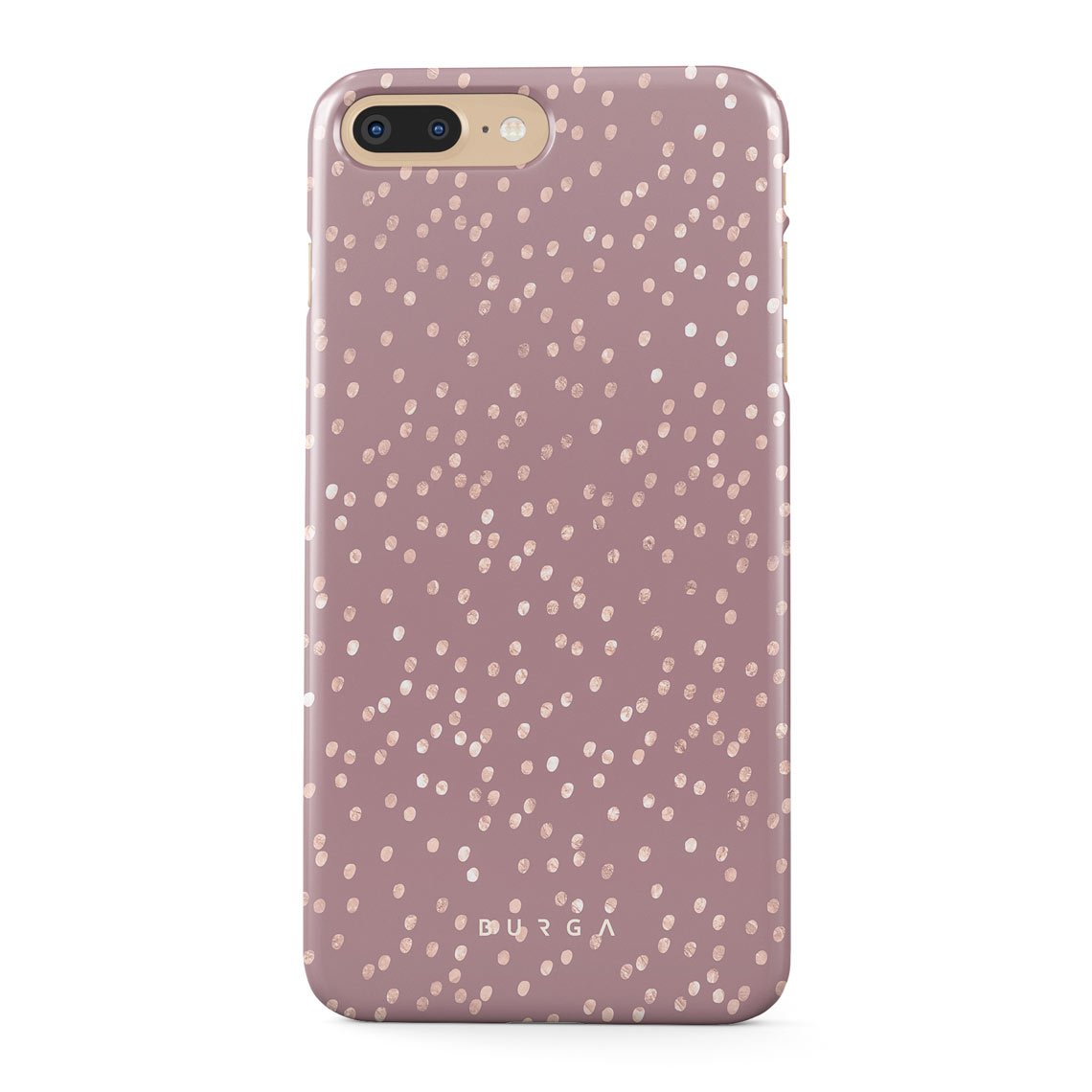 Trendy mauve color as a background for the gold-colored spots creates true beauty. Make your iPhone 7 Plus 8 Plus stand out with our protective and pretty Hot Cocoa phone case. The spotted pattern adds a touch of luxury to your phone, while the case's hard-shell nature offers much-needed protection.