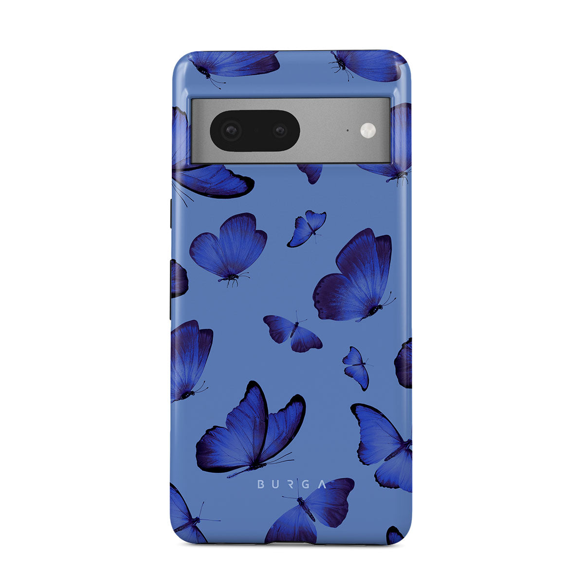 Bright blue butterflies dance across a sky-blue expanse, a visual representation of freedom and transformation. Our Spring Court Google Pixel 7a phone case design symbolizes the soul's eternal dance with change, each flutter a step towards becoming who we are meant to be.