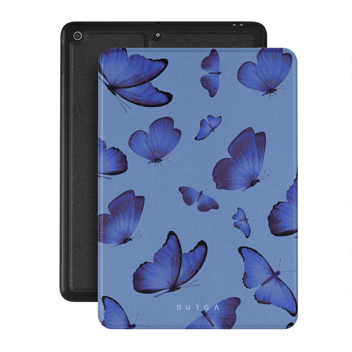 Bright blue butterflies dance across a sky-blue expanse, a visual representation of freedom and transformation. Our Spring Court iPad 10.2 (9th/8th/7th Gen) folio case design symbolizes the soul's eternal dance with change, each flutter a step towards becoming who we are meant to be.