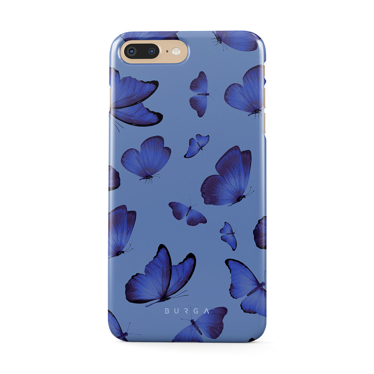 Bright blue butterflies dance across a sky-blue expanse, a visual representation of freedom and transformation. Our Spring Court iPhone 7 Plus / 8 Plus phone case design symbolizes the soul's eternal dance with change, each flutter a step towards becoming who we are meant to be.