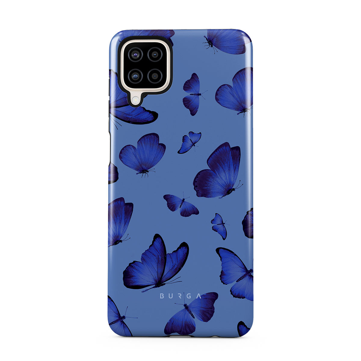 Bright blue butterflies dance across a sky-blue expanse, a visual representation of freedom and transformation. Our Spring Court Samsung Galaxy A12 4G phone case design symbolizes the soul's eternal dance with change, each flutter a step towards becoming who we are meant to be.