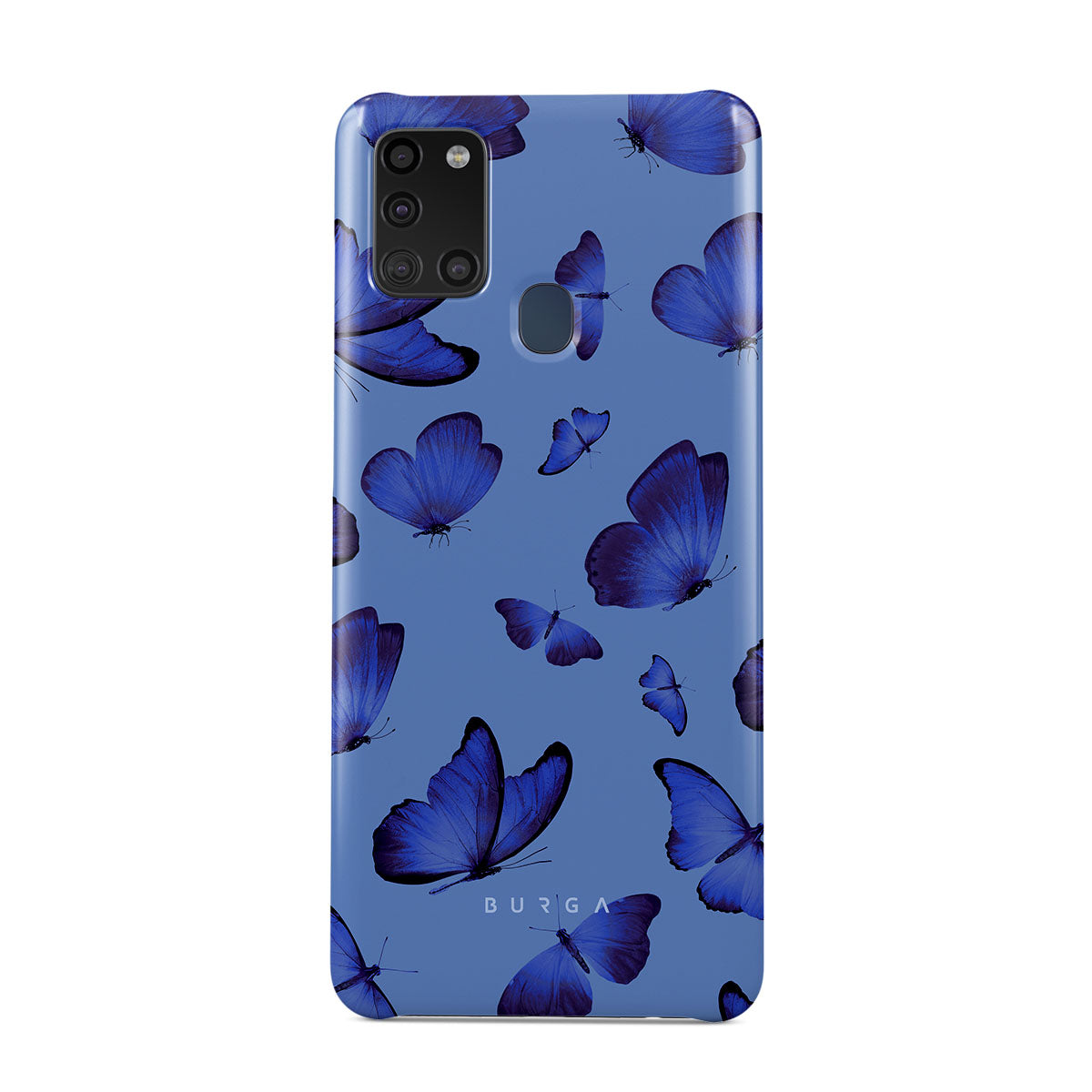 Bright blue butterflies dance across a sky-blue expanse, a visual representation of freedom and transformation. Our Spring Court Samsung Galaxy A21s 4G phone case design symbolizes the soul's eternal dance with change, each flutter a step towards becoming who we are meant to be.
