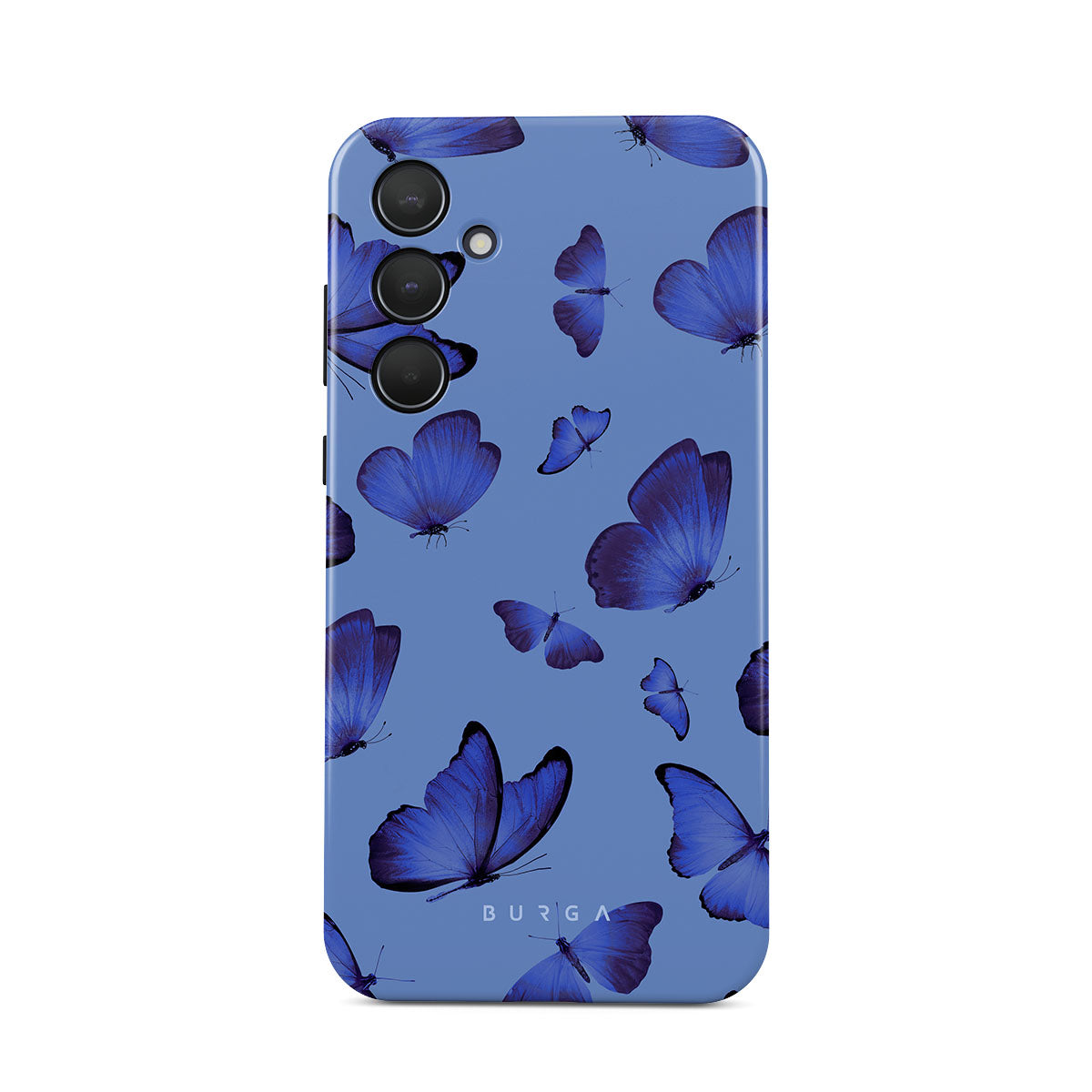 Bright blue butterflies dance across a sky-blue expanse, a visual representation of freedom and transformation. Our Spring Court Samsung Galaxy A35 phone case design symbolizes the soul's eternal dance with change, each flutter a step towards becoming who we are meant to be.