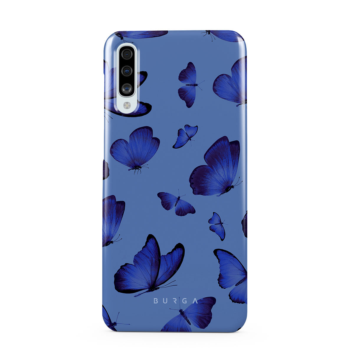 Bright blue butterflies dance across a sky-blue expanse, a visual representation of freedom and transformation. Our Spring Court Samsung Galaxy A50 phone case design symbolizes the soul's eternal dance with change, each flutter a step towards becoming who we are meant to be.