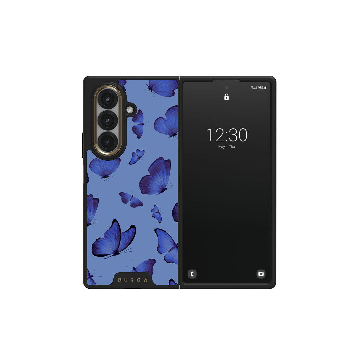 Bright blue butterflies dance across a sky-blue expanse, a visual representation of freedom and transformation. Our Spring Court Samsung Galaxy Z Fold 7 phone case design symbolizes the soul's eternal dance with change, each flutter a step towards becoming who we are meant to be.