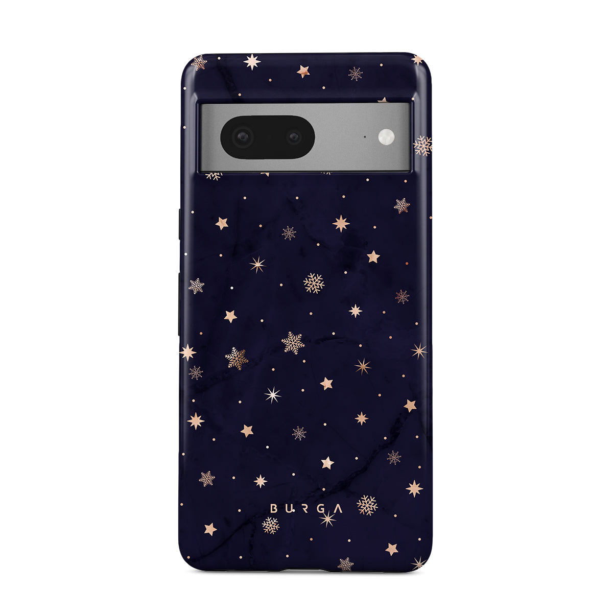 With a dreamy combination of dark blue and golden colors in the pretty star pattern found in our Midnight Kiss Google Pixel 7a phone case, you can protect your phone and add a magical feel to it just in one go.