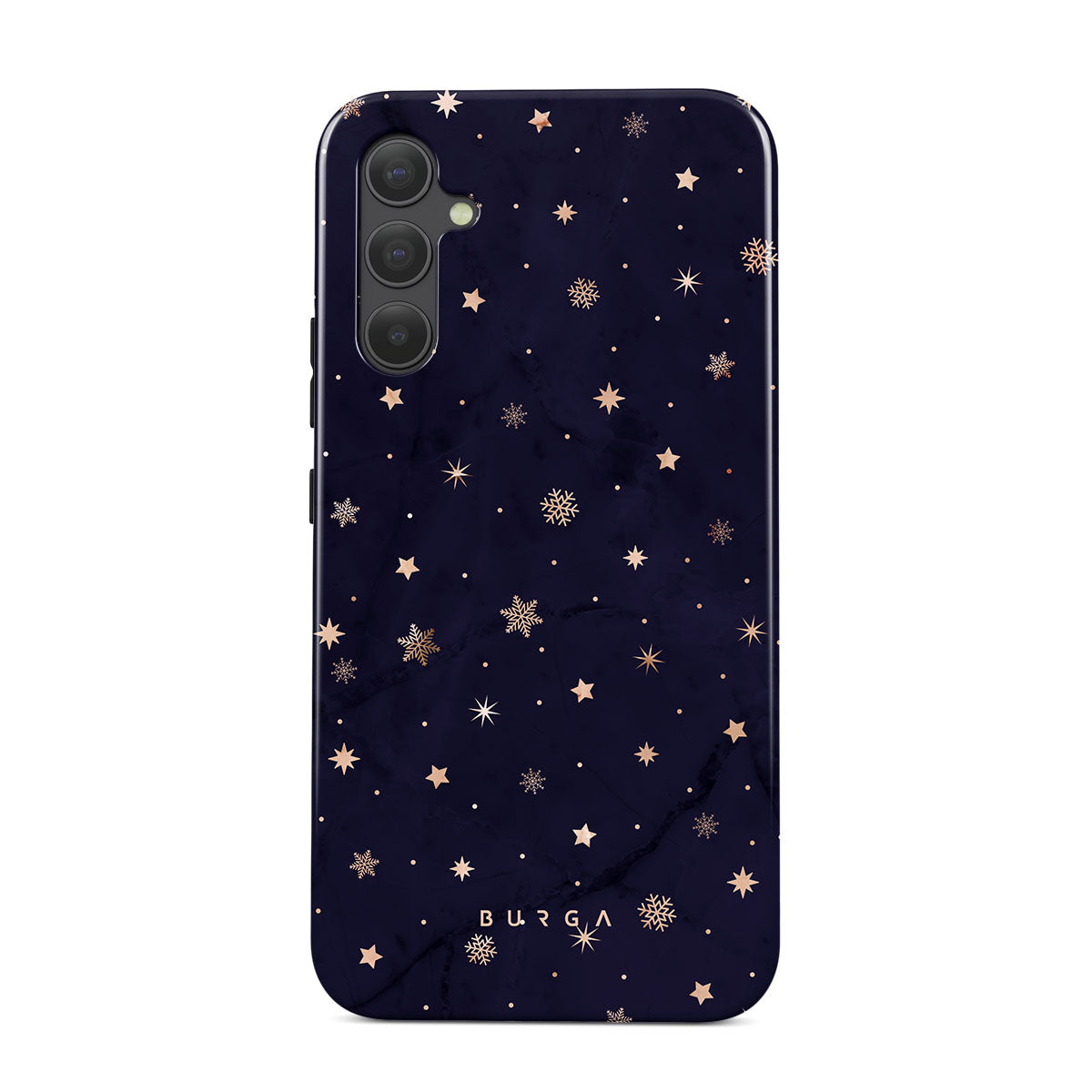 With a dreamy combination of dark blue and golden colors in the pretty star pattern found in our Midnight Kiss Samsung Galaxy A34 phone case, you can protect your phone and add a magical feel to it just in one go.