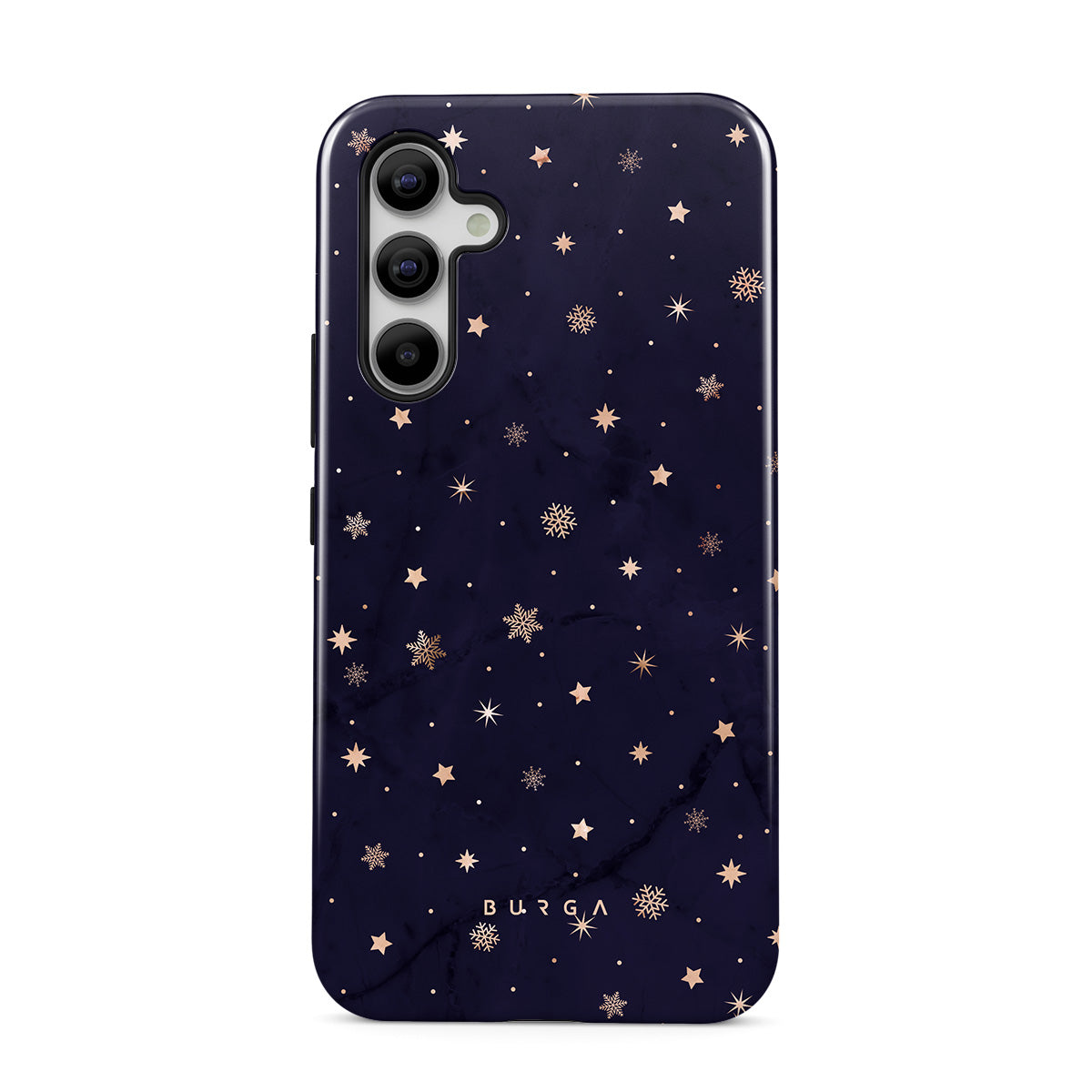 With a dreamy combination of dark blue and golden colors in the pretty star pattern found in our Midnight Kiss Samsung Galaxy A51 phone case, you can protect your phone and add a magical feel to it just in one go.