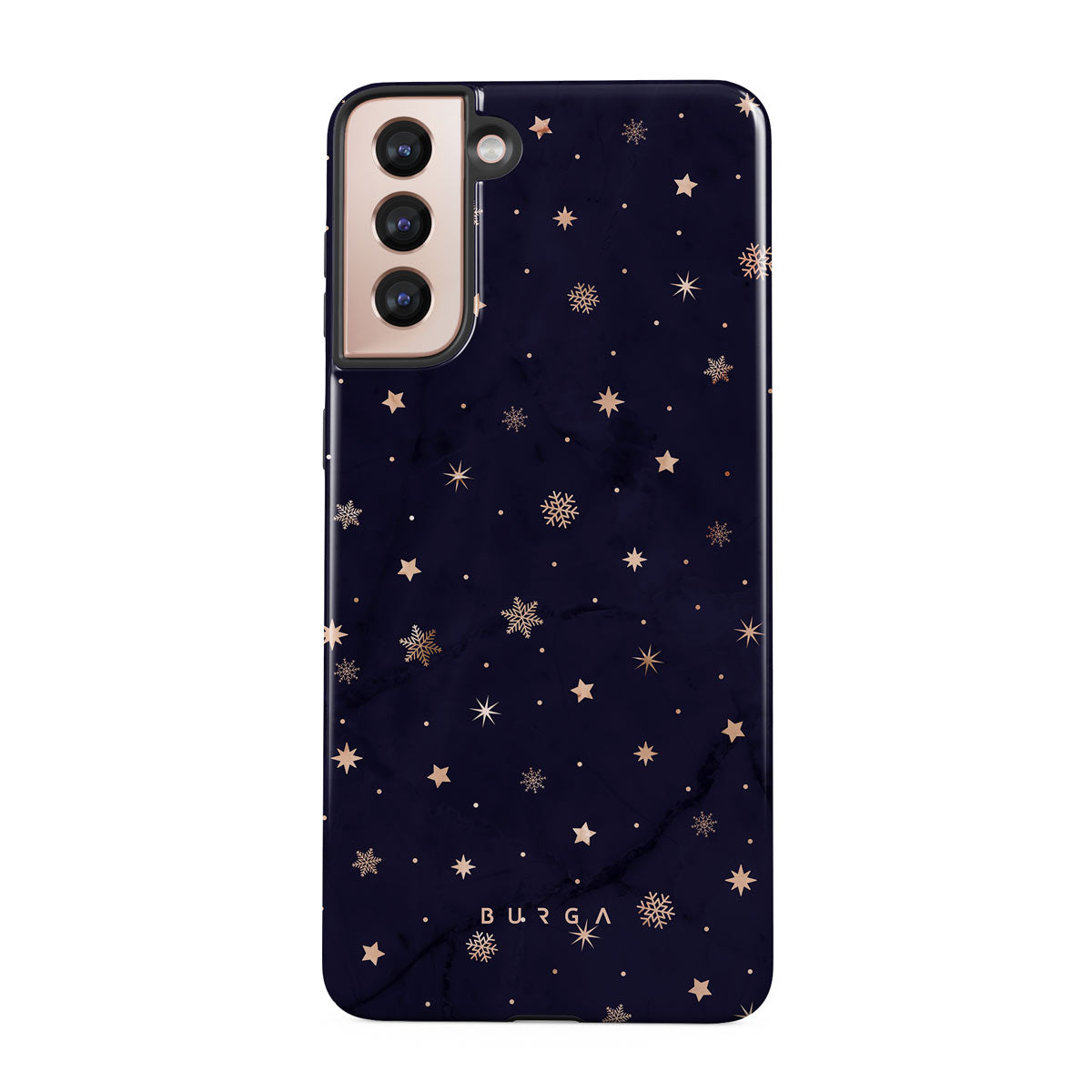 With a dreamy combination of dark blue and golden colors in the pretty star pattern found in our Midnight Kiss Samsung Galaxy S21 Plus phone case, you can protect your phone and add a magical feel to it just in one go.