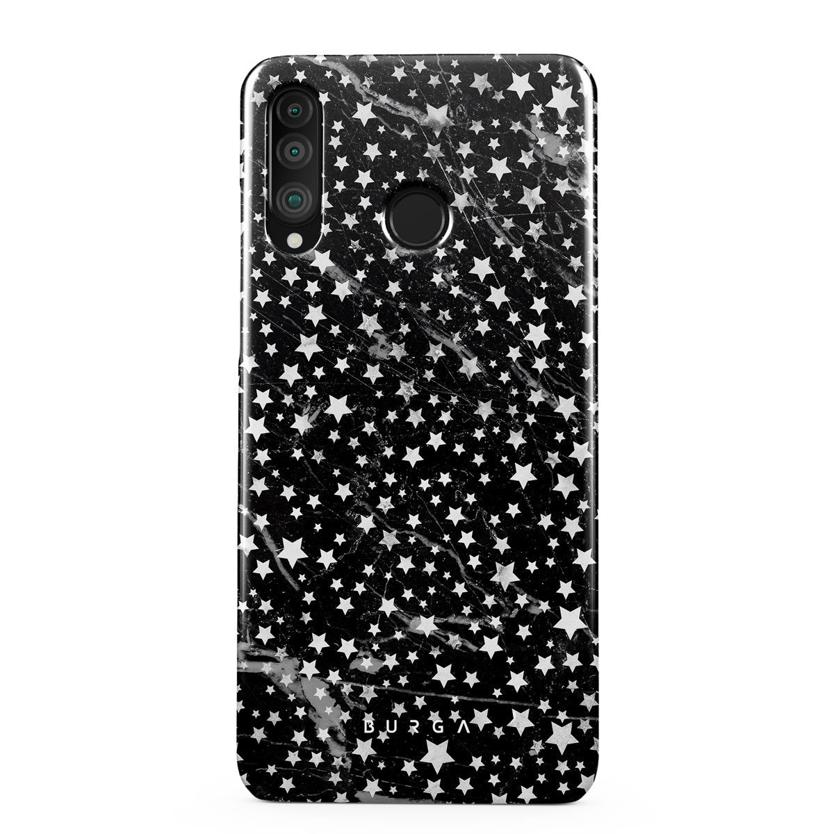 Huawei P30 Lite phone case is inspired by the sky above us. Here the charming star pattern meets with a trendy black and white marble. Add the unique combination to your wardrobe and transform your protective phone case into a fashion accessory.
