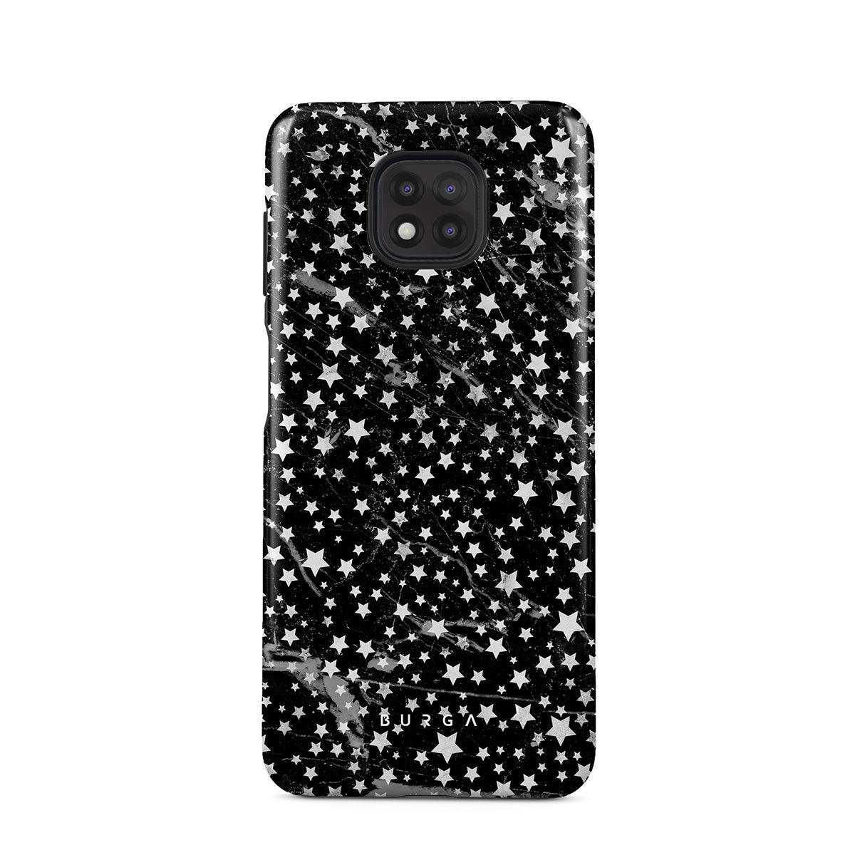 Motorola Moto G Power 2021 phone case is inspired by the sky above us. Here the charming star pattern meets with a trendy black and white marble. Add the unique combination to your wardrobe and transform your protective phone case into a fashion accessory.